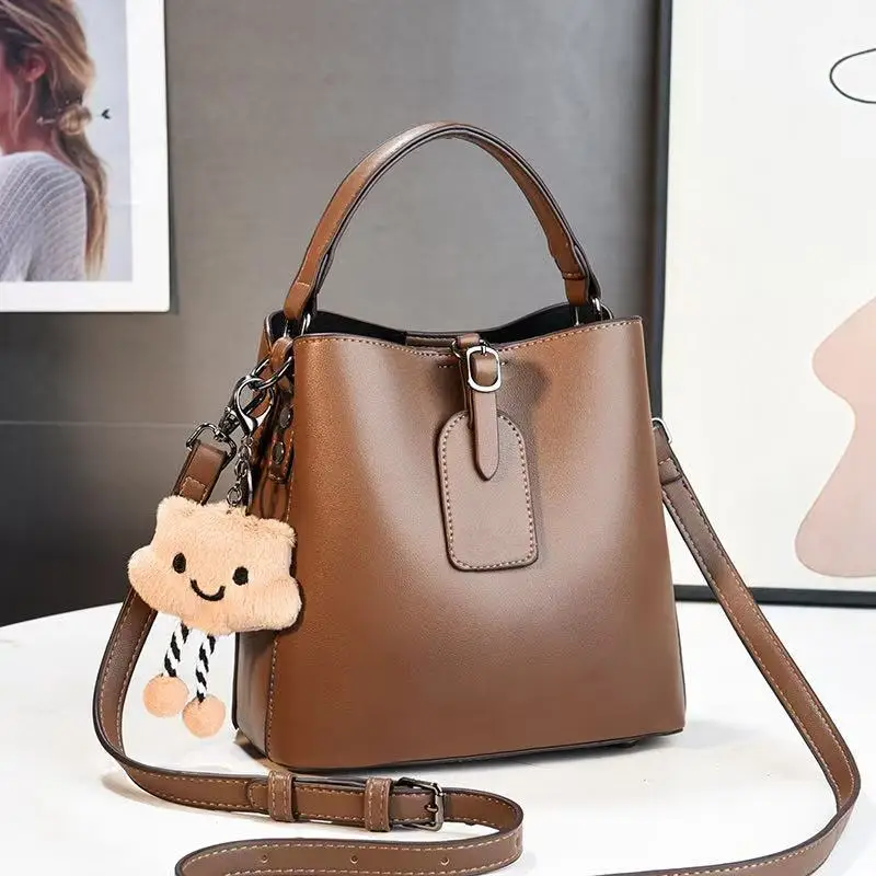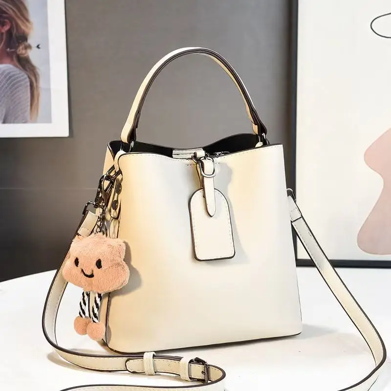 Bucket Bag, Plush Pendant Shoulder Bag Handbag Solid Color Texture Women's Bag with Zipper Handbag