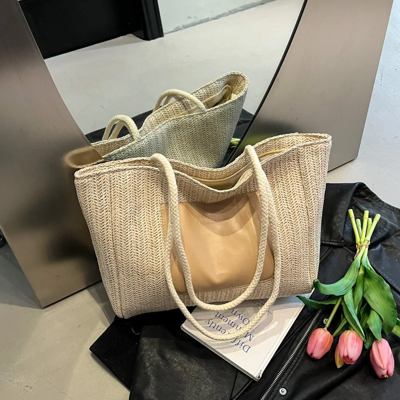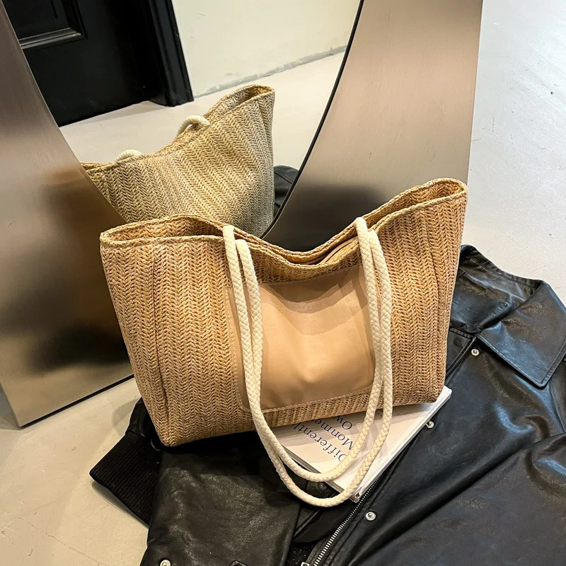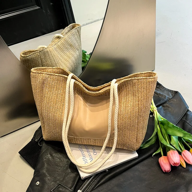 New Fashion Tote Bag for Women 2026 Large Capacity Shoulder Bag with Pocket Ladies' Handbag for Beach Vacation Beach