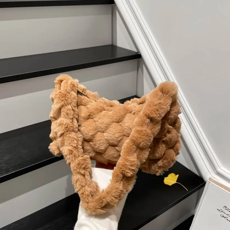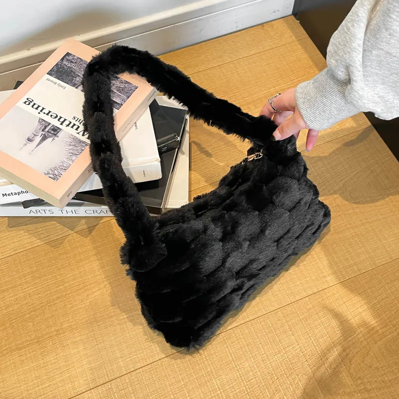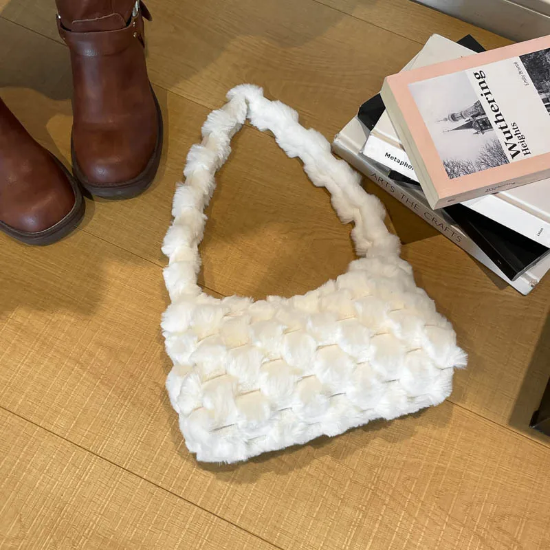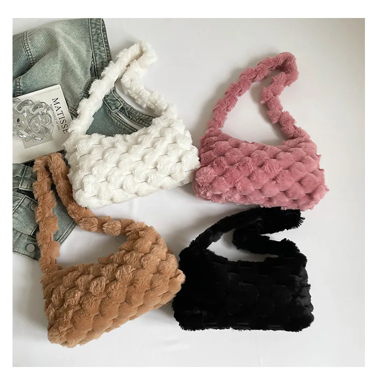 Autumn and Winter Cute Plush Shoulder Bag Wholesale Solid Color Small square Bags Texture Handbag for Women