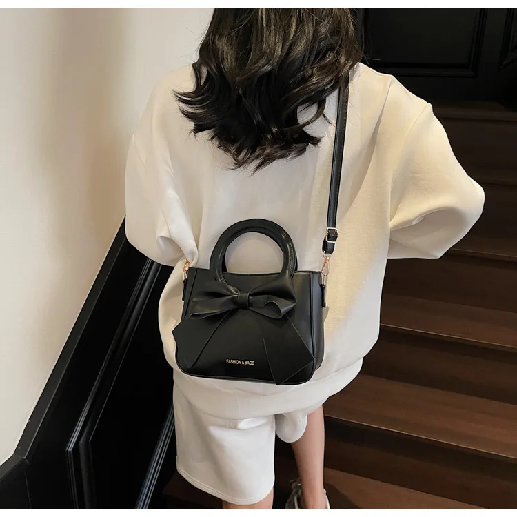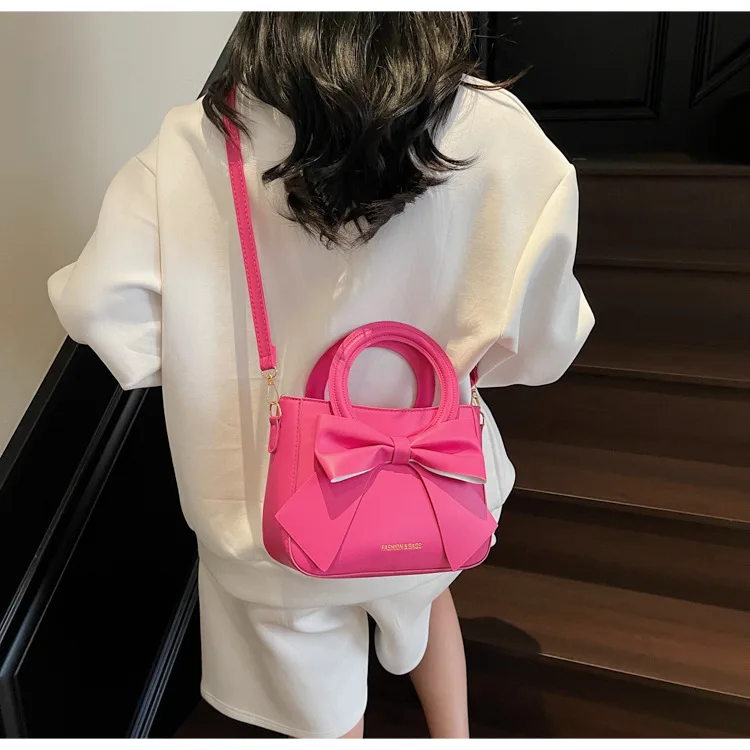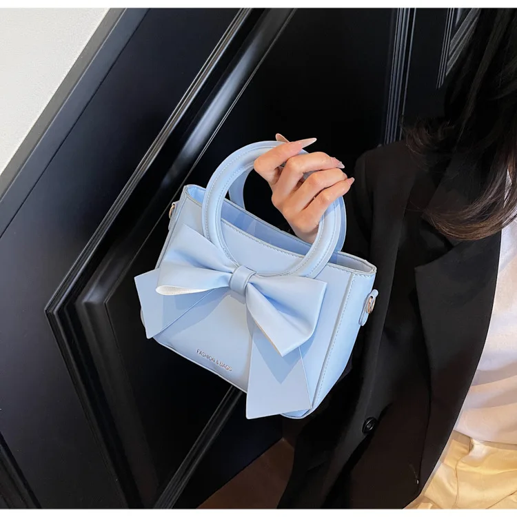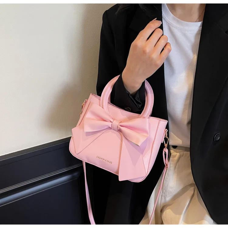 2026 Candy Color New Woman Handbags PU Leather Woman Bags with Bow Cute Zipper Bags for Lady