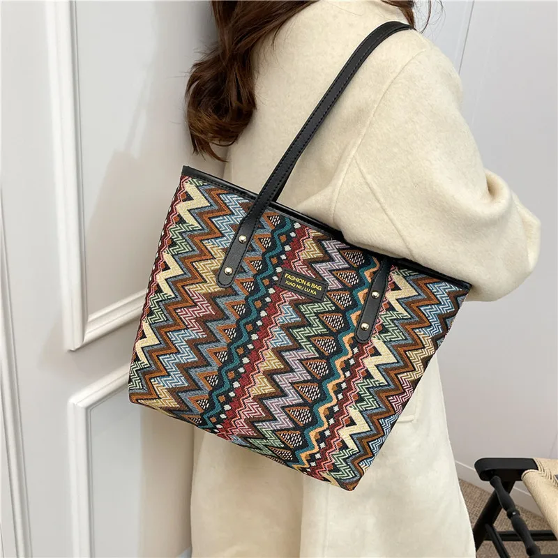2026 Wholesale Large Capacity Canvas Bag Women's New Trendy College Student Class Fashion Commuting Tote Bag