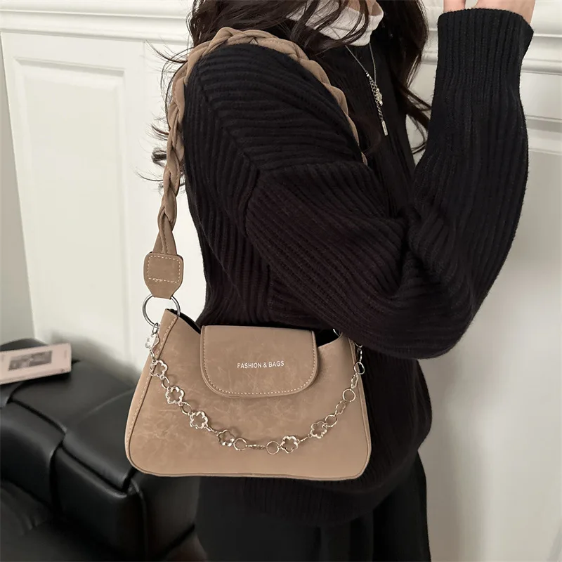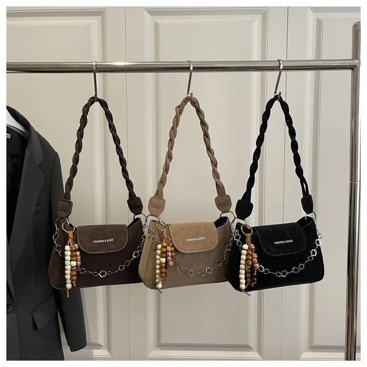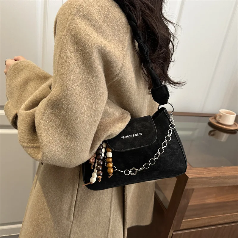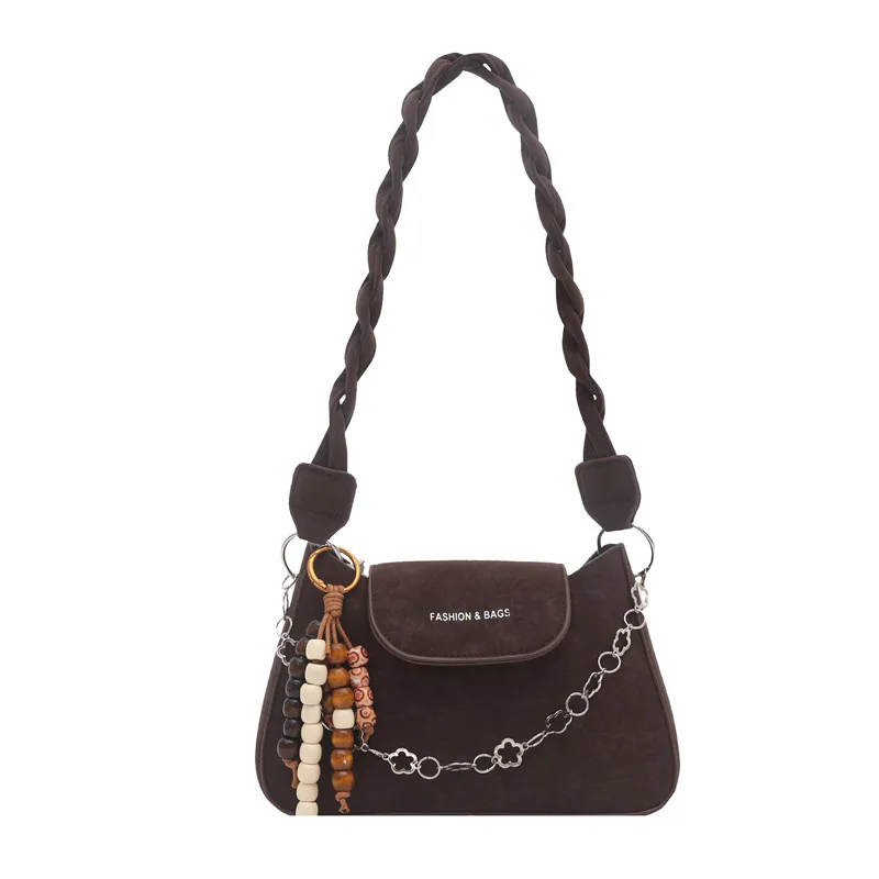 Fashionable Retro Shoulder Bag 2026 Winter New Women's Bag with Pendant Light Luxury Women's Handbag with Chain