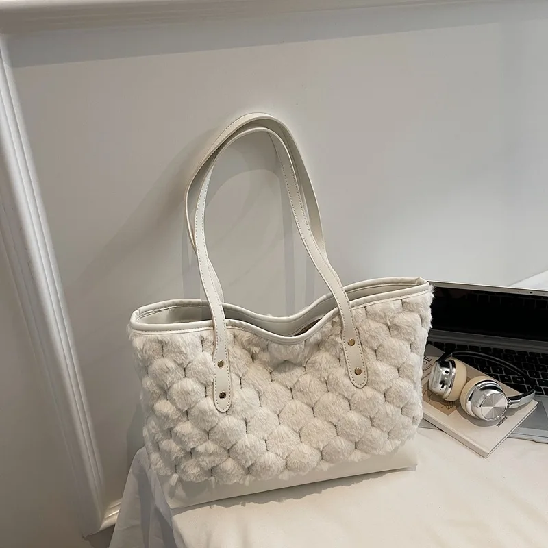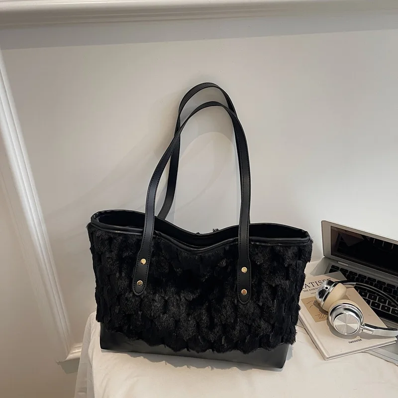 Large Capacity Single Shoulder Bag for Women 2026 New Fashionable Plush Bag Texture Handheld Tote Bag