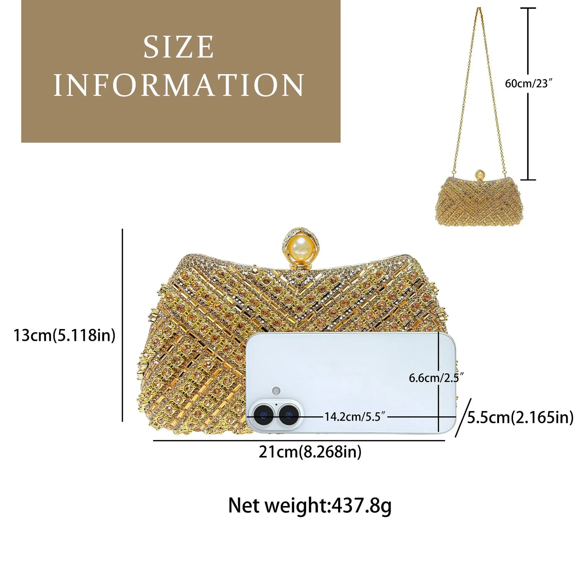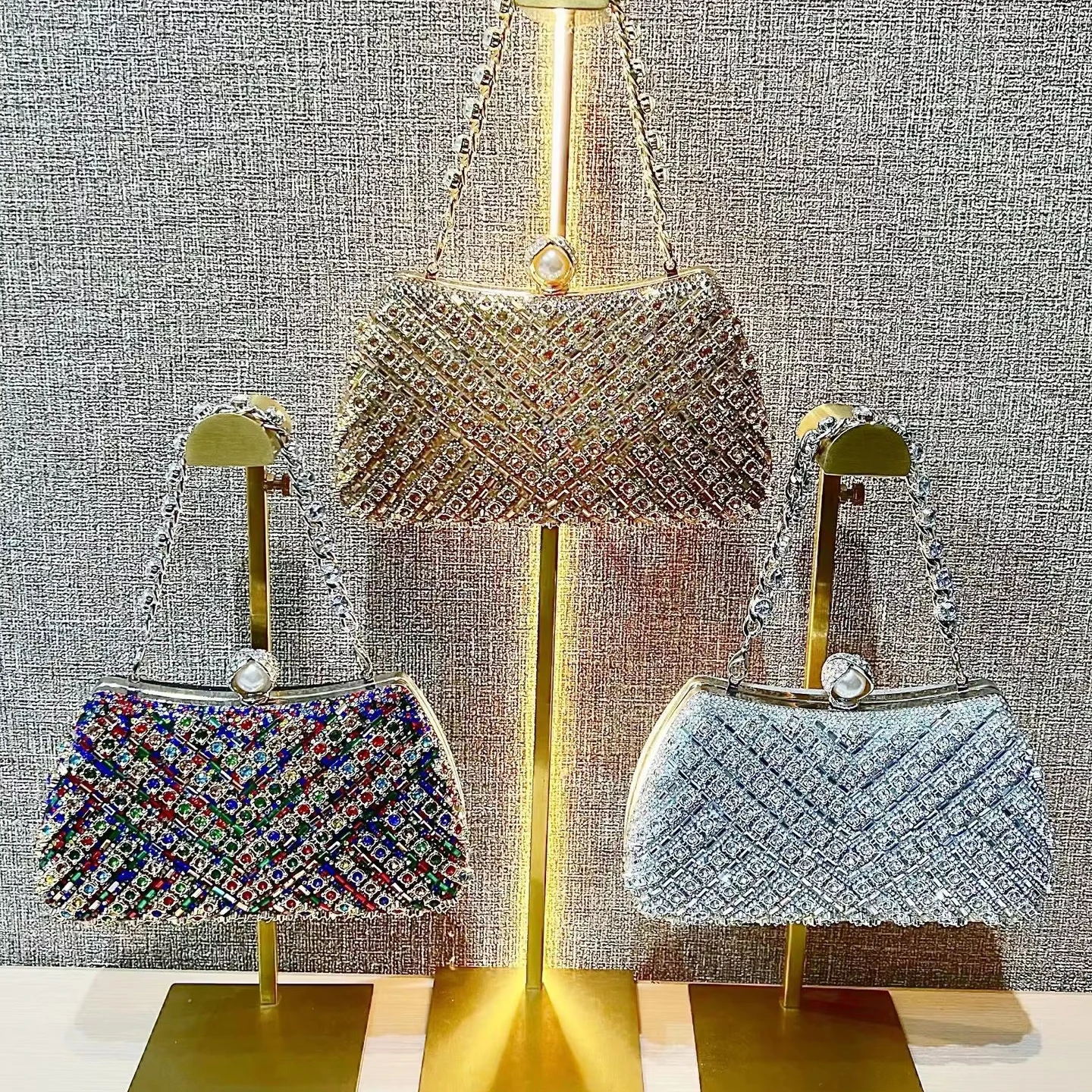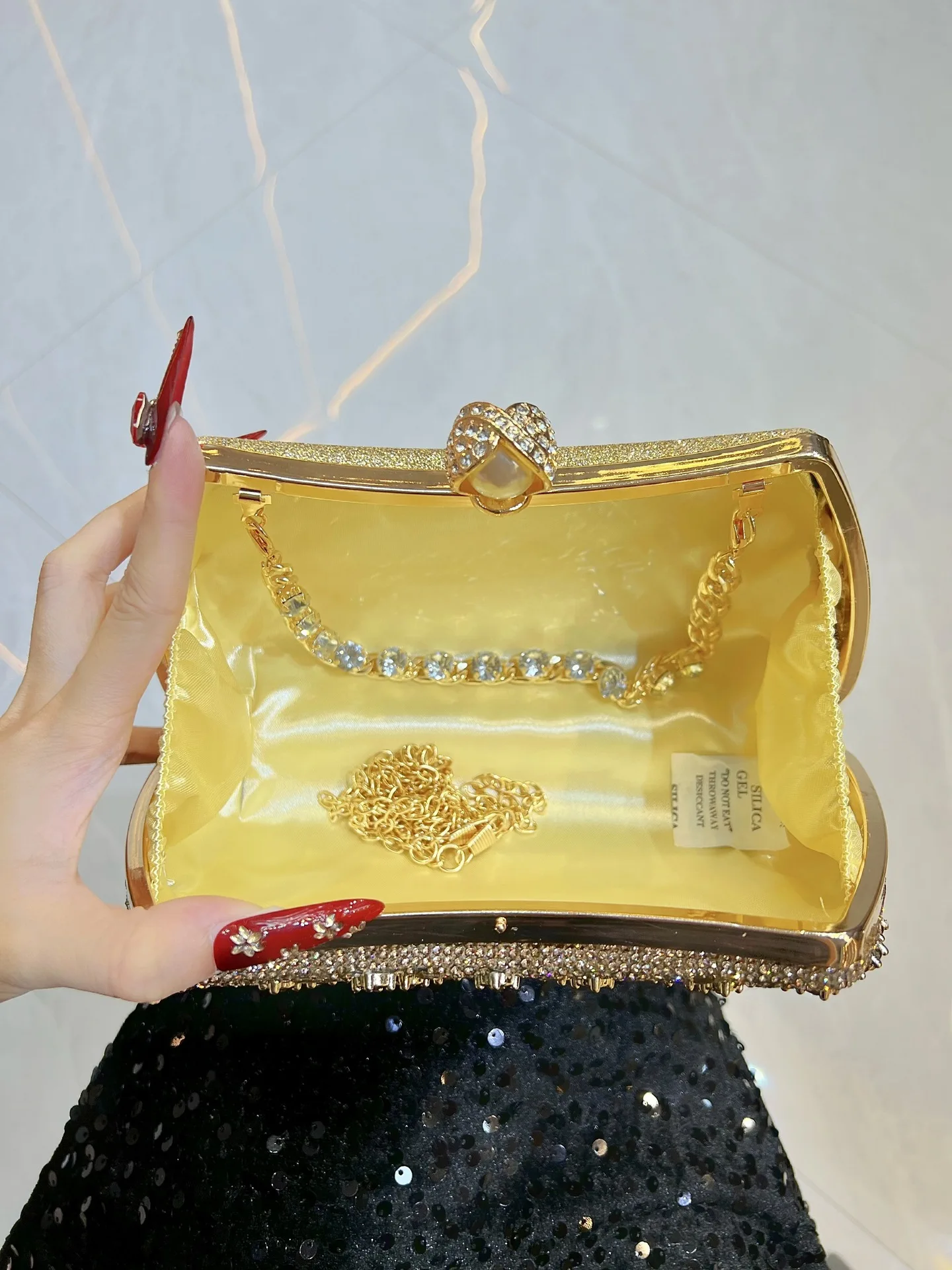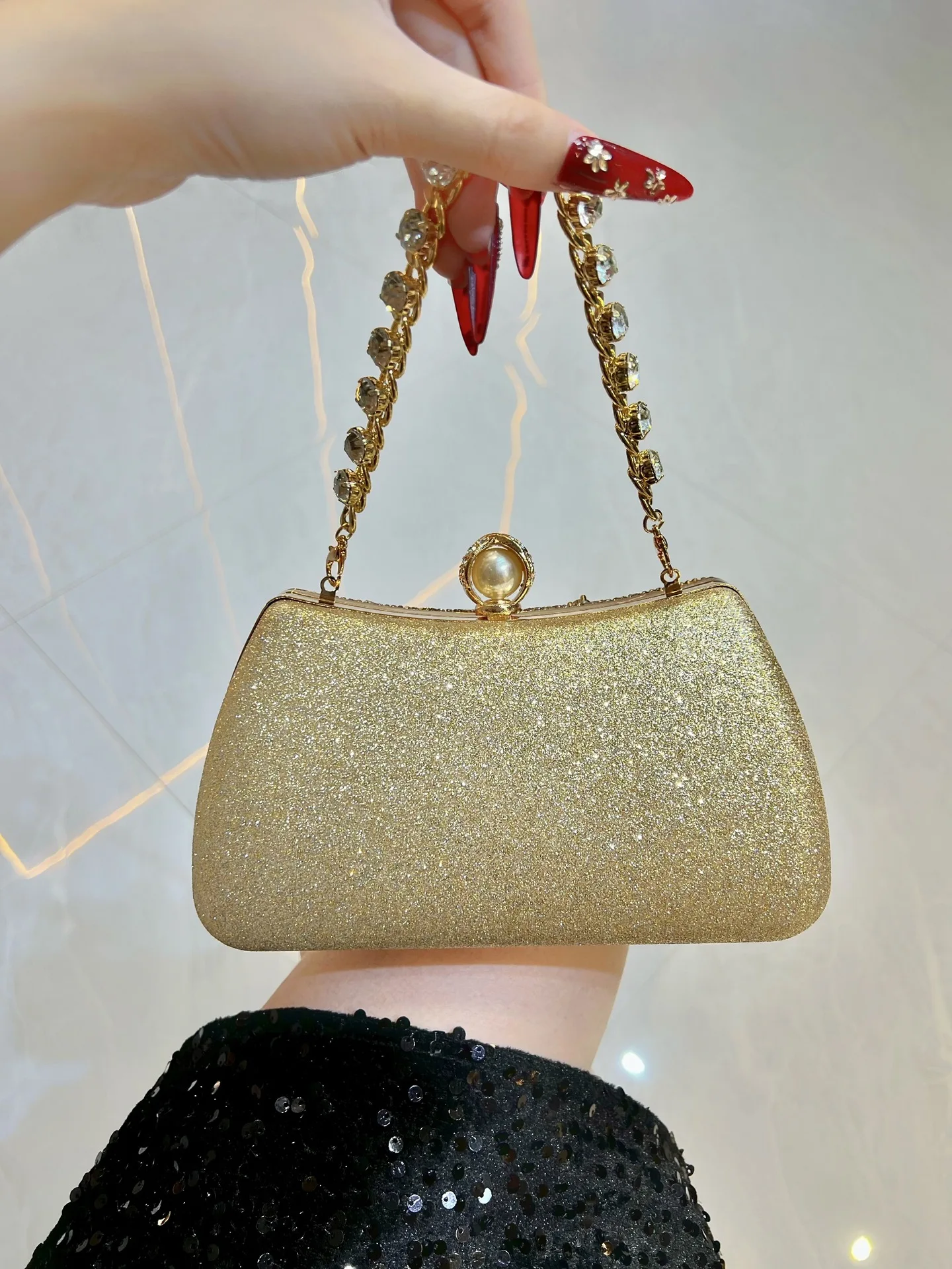 New European and American Banquet Bag Rhinestone Hand-held Bag with Chain Fashionable New Box Bag for Women