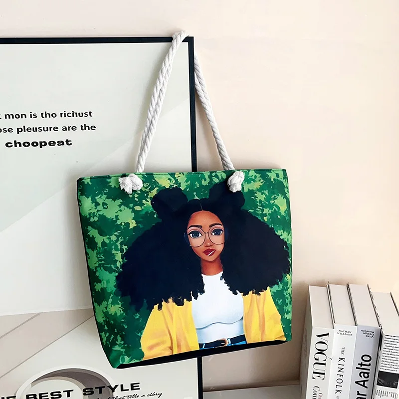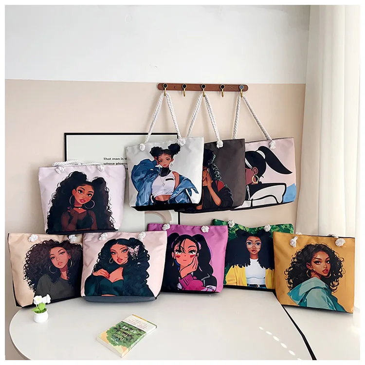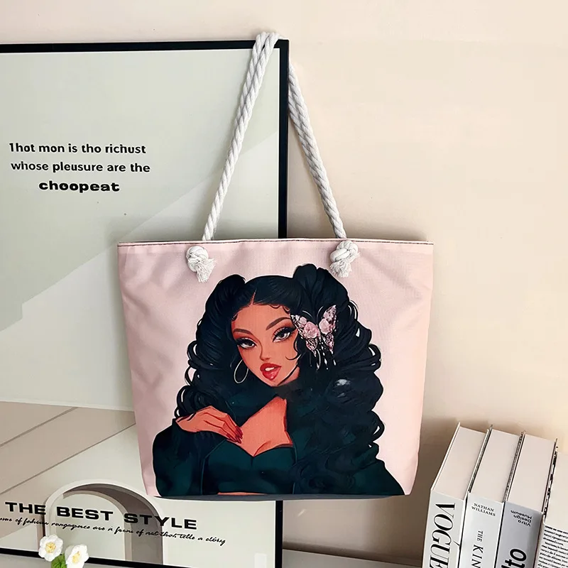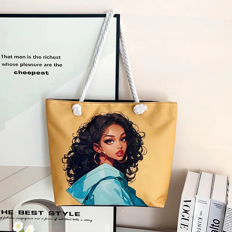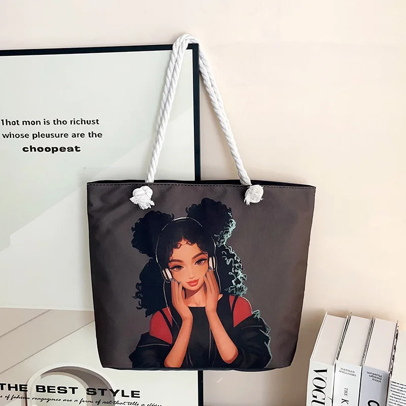 New Cartoon Printed Shoulder Bag Fashion Creative Tote Bag for Women Large Capacity Thick Rope Women's Bag