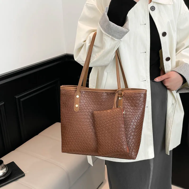 Woven Pattern Handbag with Wallet Single Shoulder Tote Bag for Women 2026 New Large Capacity Shoulder Bag