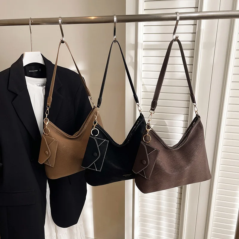 2026 Solid Color Retro Shoulder Bag New Minimalist and Fashionable Handbag Texture PU Leather Tote Bag with Wallet