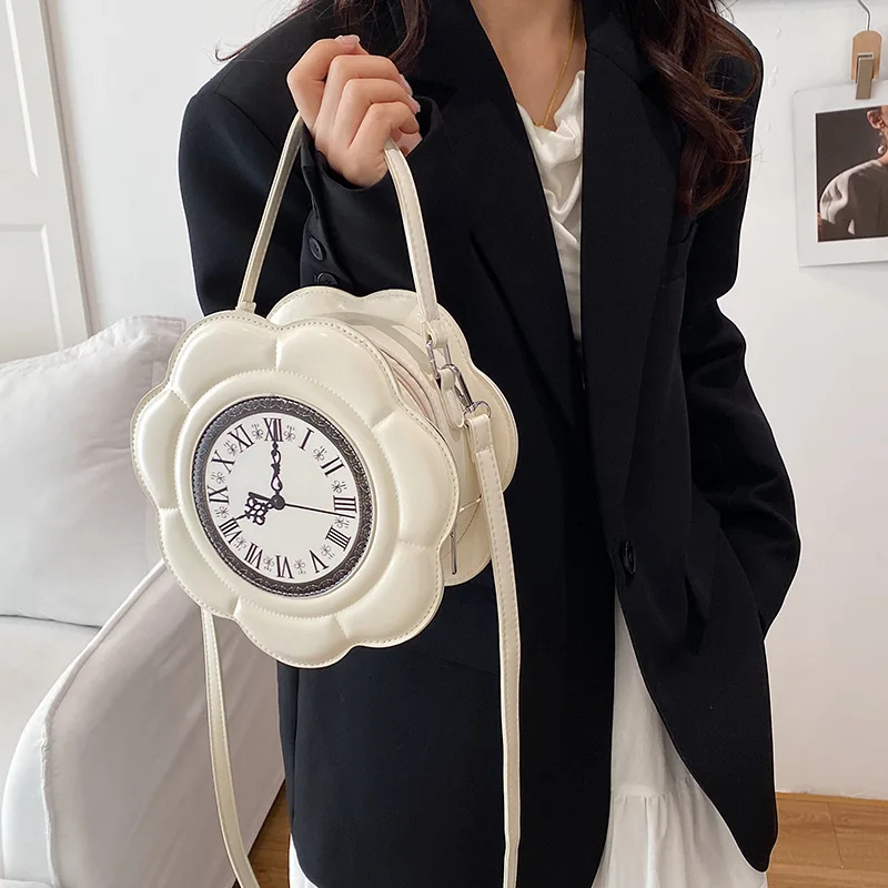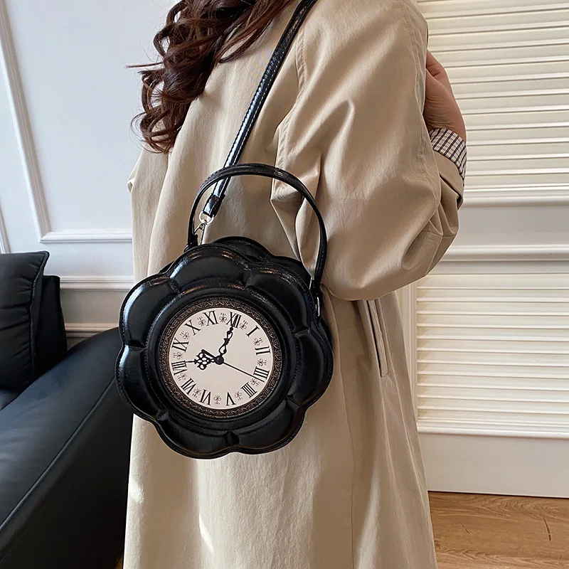 Vintage Clock Shaped Small Bag 2026 New Fashionable Handbag PU Leather Small Round Bag for Women