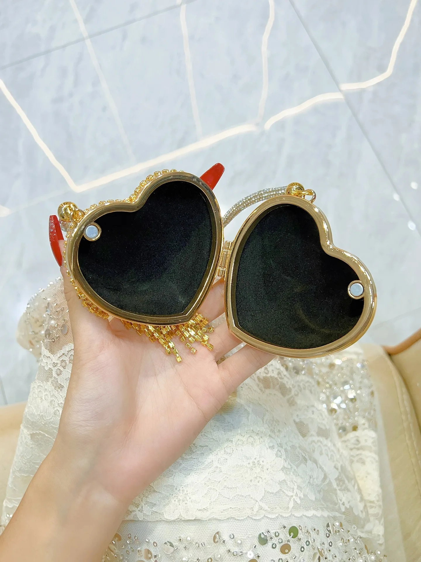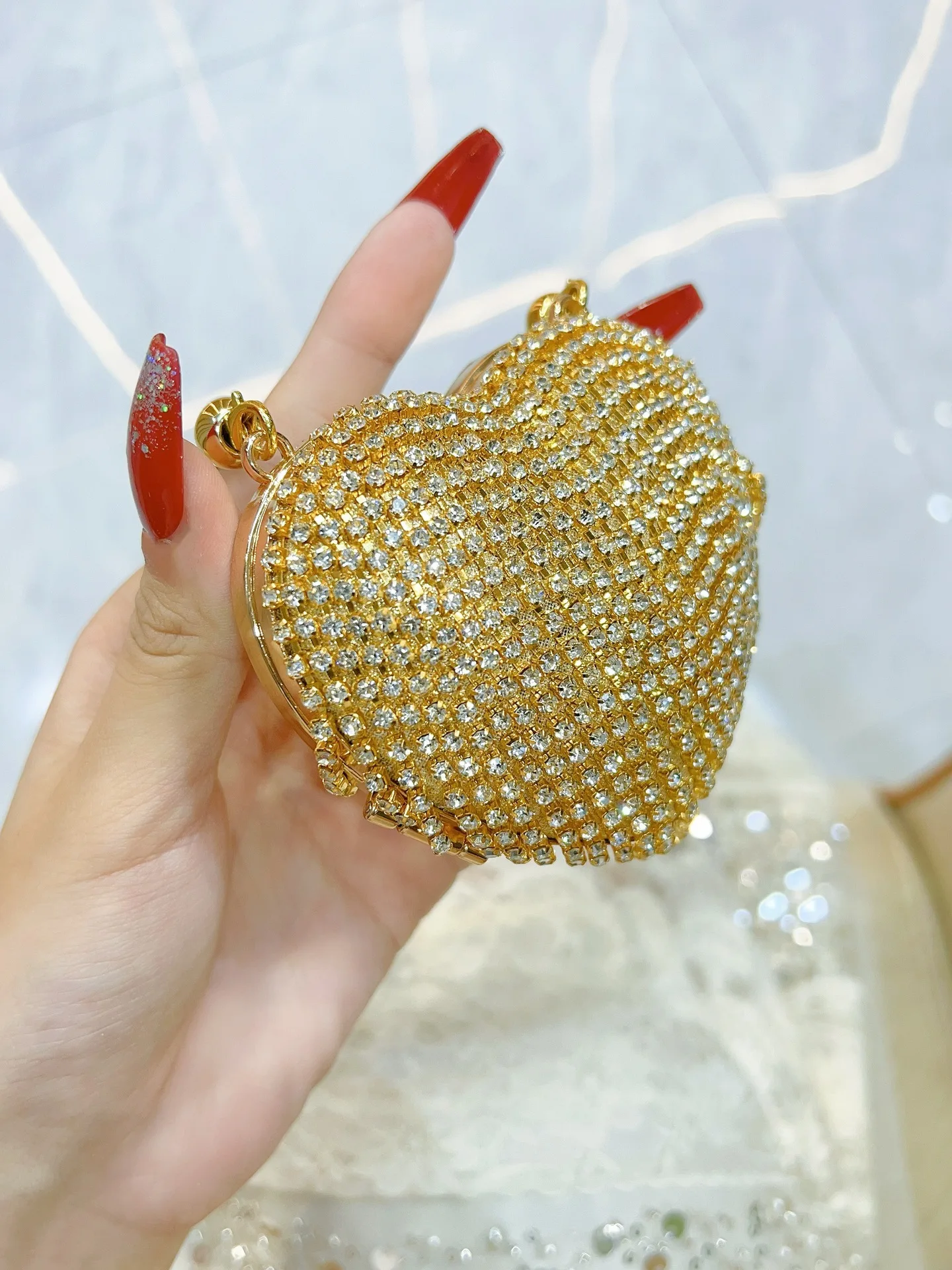 New Mini Change Bag for Women Diamond Heart-shaped Dinner Bag Light Luxury Mini Crossbody Bag
