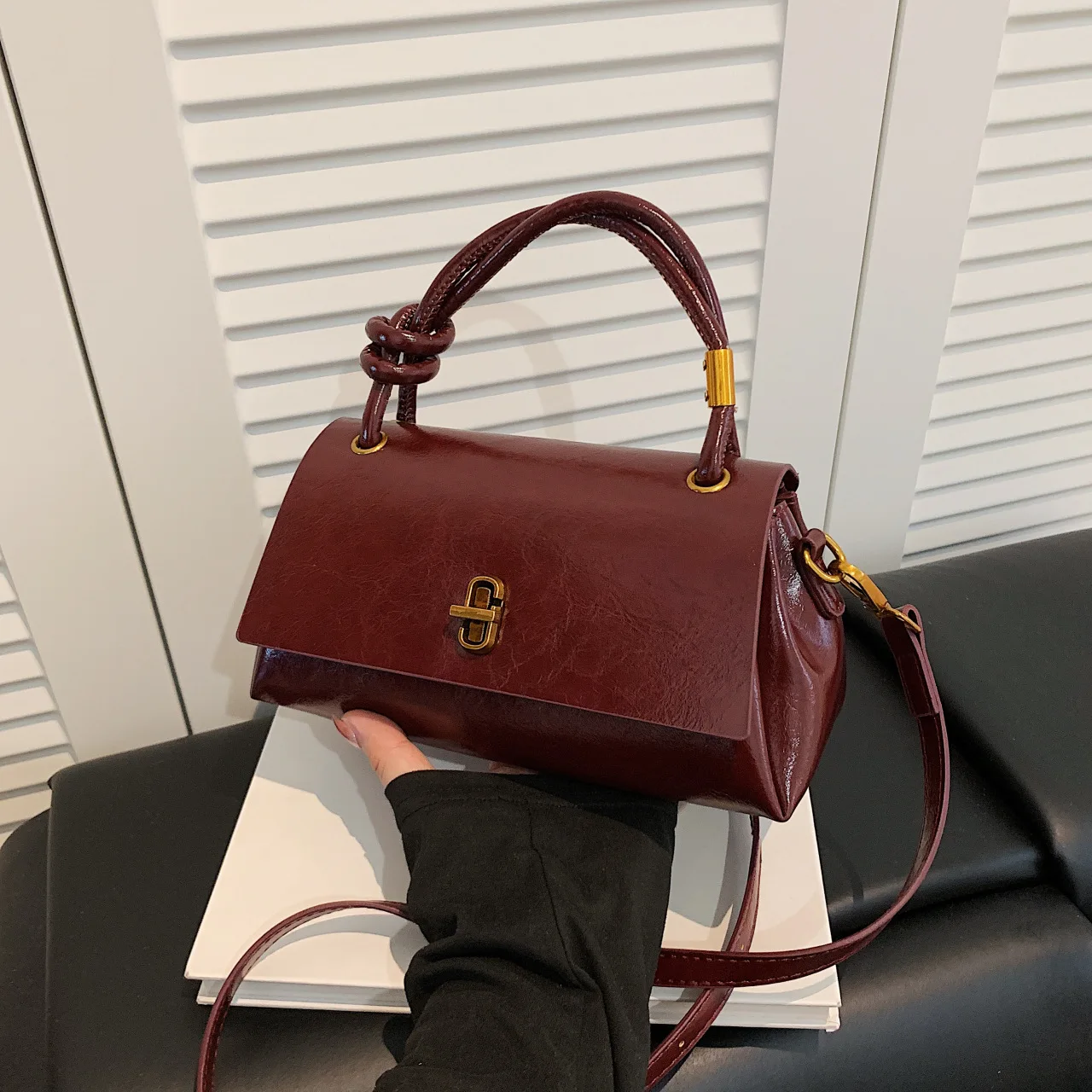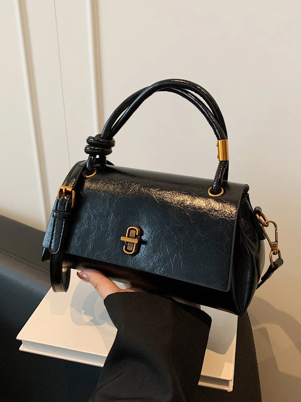 New Flap Bag with Shoulder and Crossbody Straps a Lock and Chain Square Design Crossbody Bags for Commuting