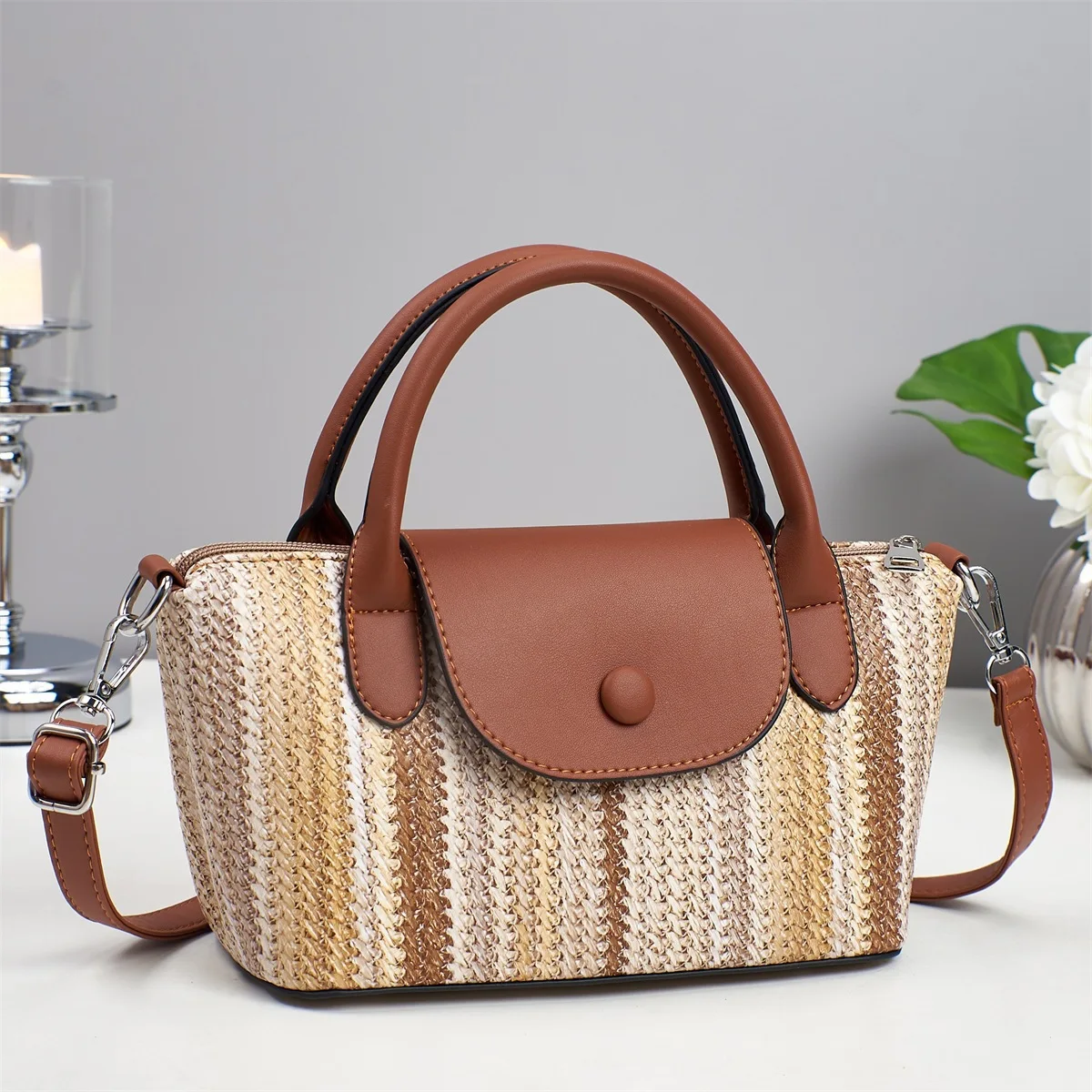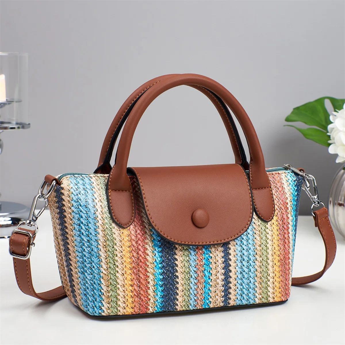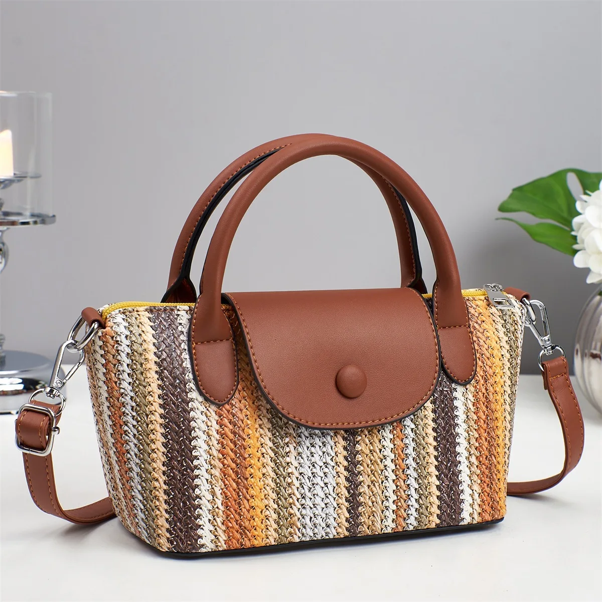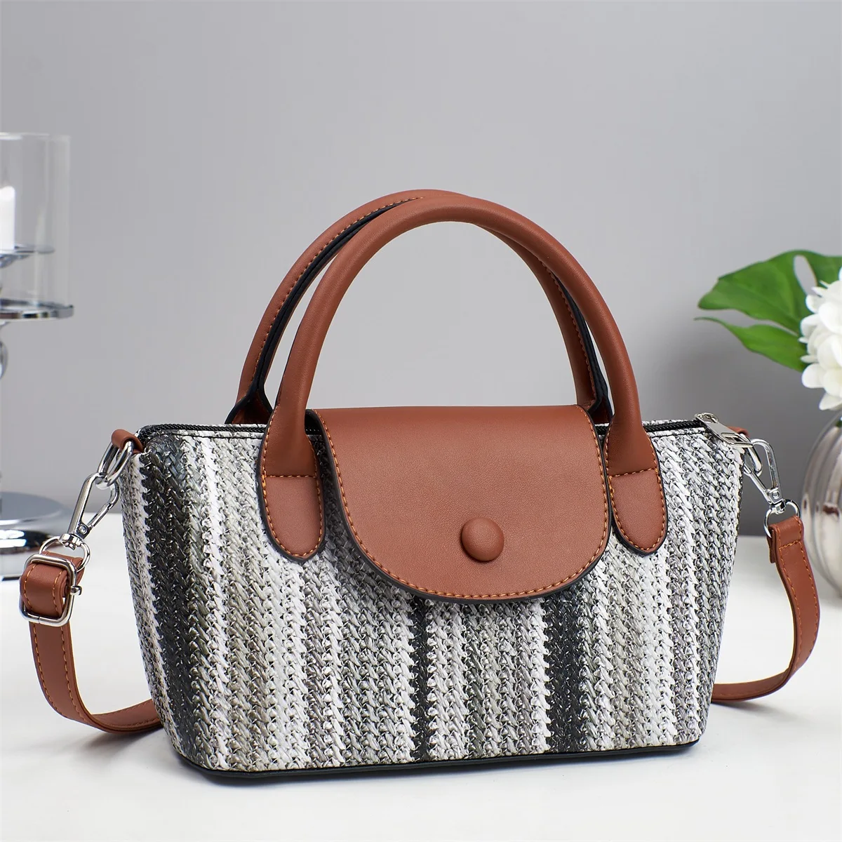 High-End Textured Color-Blocking Stripe Handbag for Women 2026 New Popular Fashionable Versatile Crossbody Bag