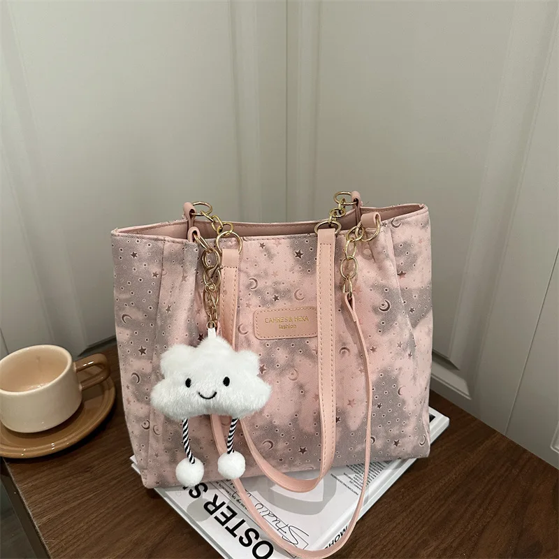 Large Capacity Tote Bag with Pendant 2026 Autumn/Winter New Shoulder Bag PU Leather Handbag for Women