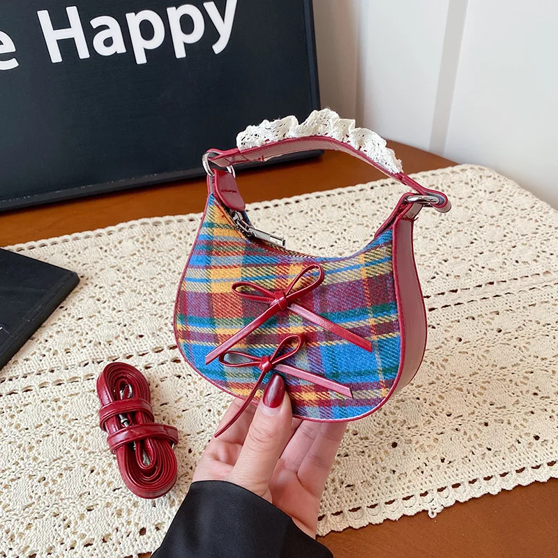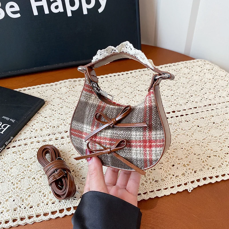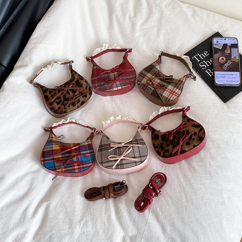 New Winter Casual Fashion Plaid Crossbody Handbag Retro Leopard Print Fashionable Underarm Women's Bag