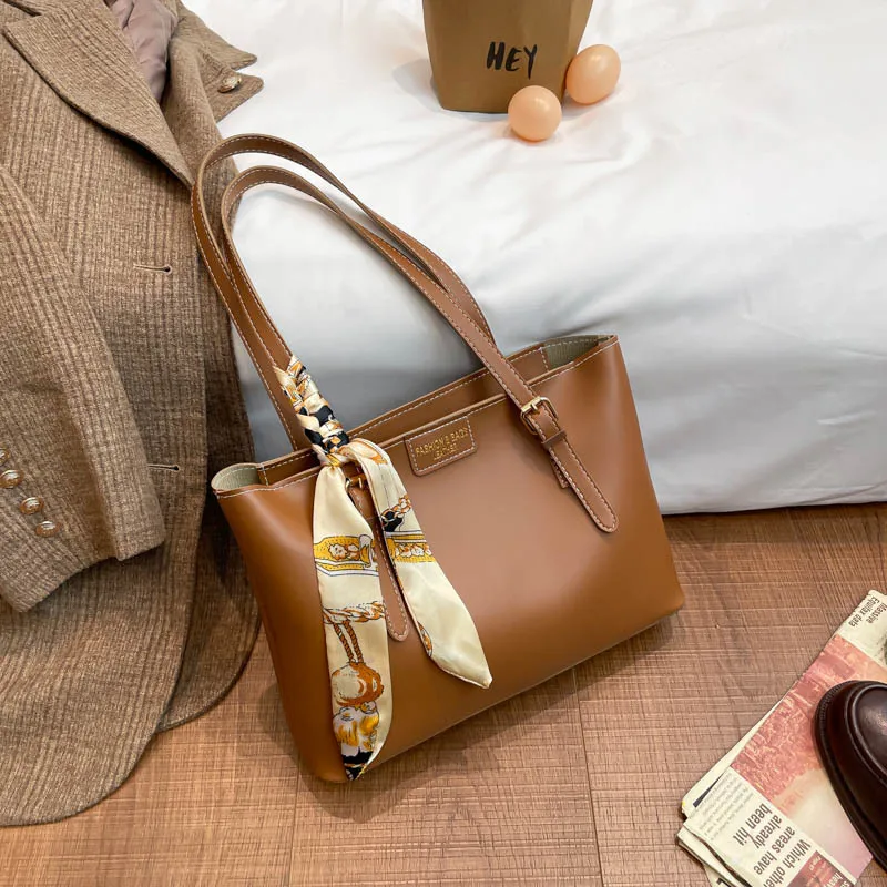 Large Capacity Tote Bag for Women 2026 Autumn/Winter New Shoulder Bag Retro Style Handbag with Scarf