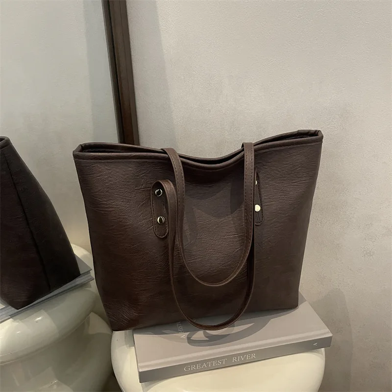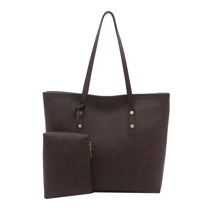 Simple Solid Color Tote Bag for Women Fashion Shoulder Bag with Wallet Large Capacity PU Leather Handbag