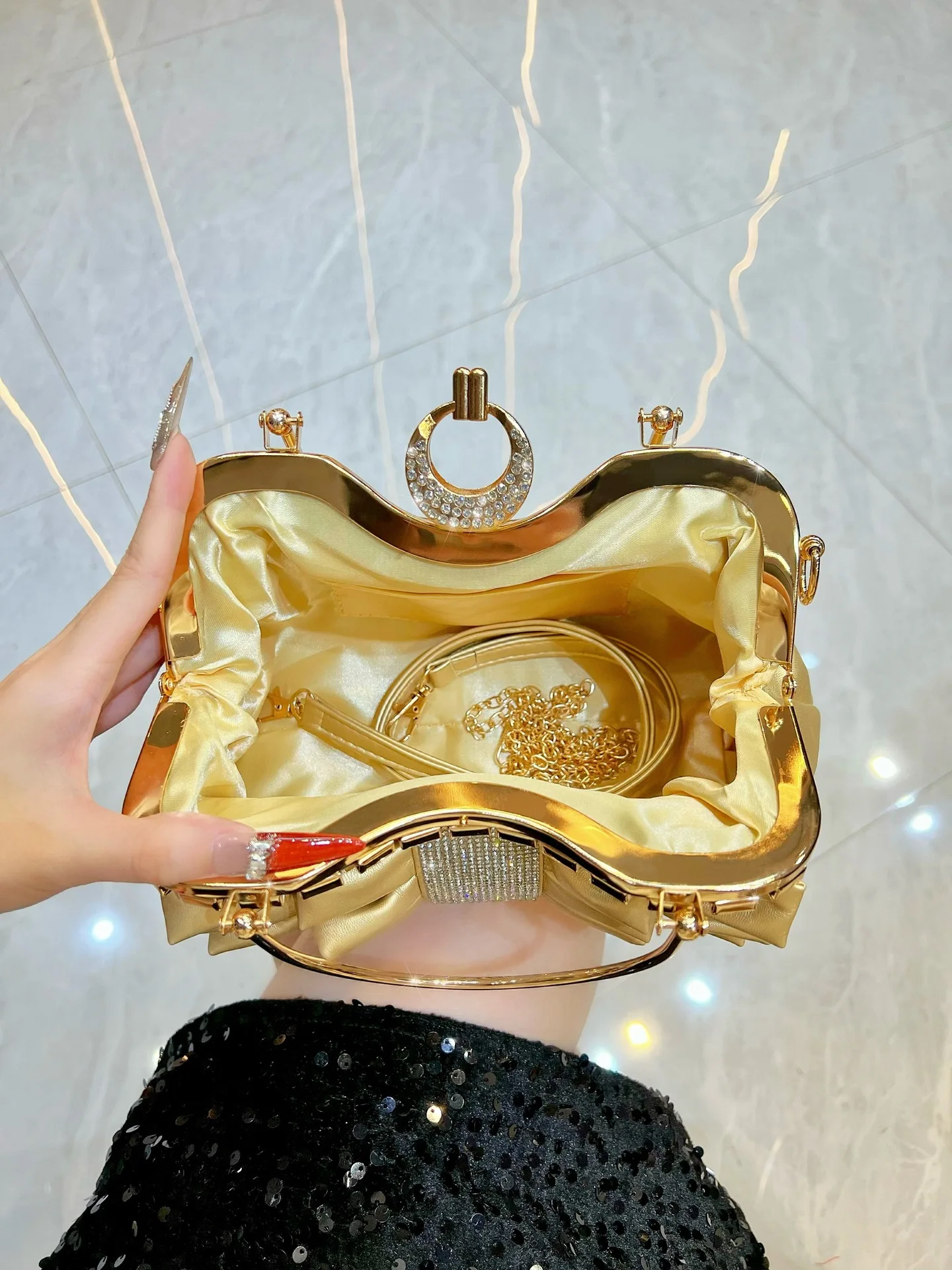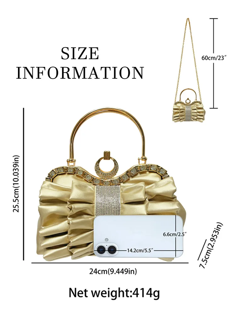 New Fashionable Handbag with Chain Folding Banquet Bag for Women Light Luxury Shiny Crossbody Bag