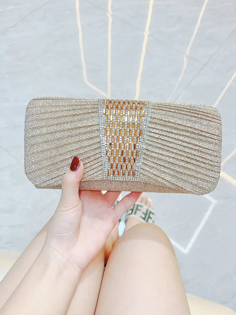 New Evening Bag for Women Rhinestone Hand-held Bag with Chain Diamond Encrusted Crossbody Bag