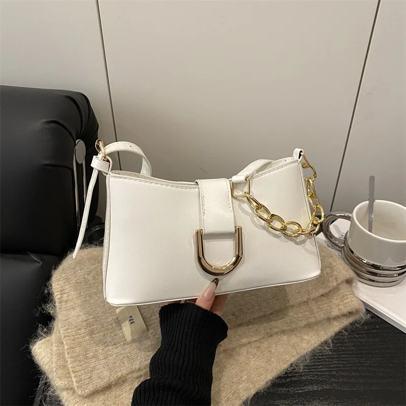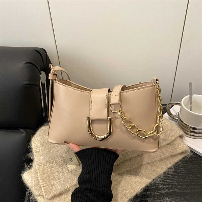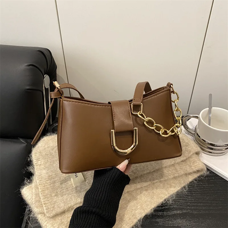 Solid Color Simple Winter New Crossbody Small Square Bag Casual Retro Fashion Chain Shoulder Bag for Women