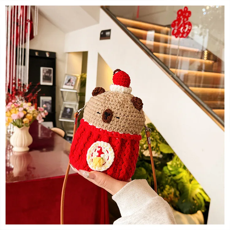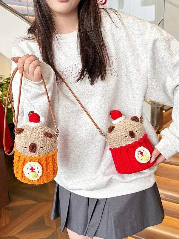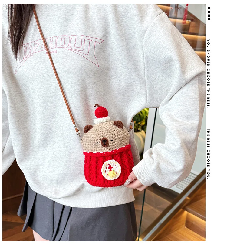 High-Quality Knit Phone Bag Large Capacity Single Shoulder Bag Adorable Pure Handmade Crochet Bag