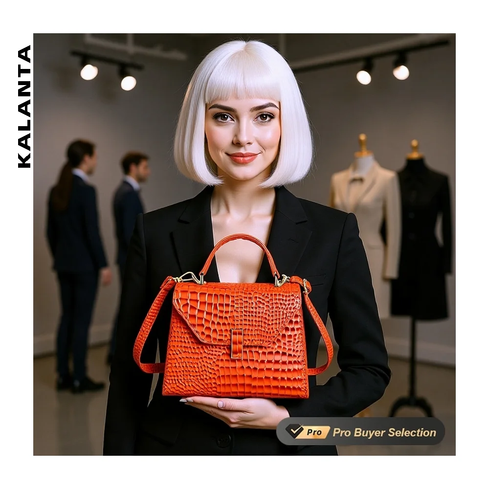 KALANTA Crocodile Print Handbag Trending Flap Top-Handle Main Minimal Lock Lady Handbags European Brand