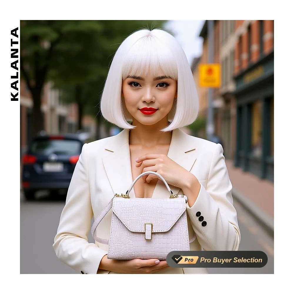 KALANTA Crocodile Polyester Lock Purse Wholesale Office Handle Lady Top-Handle Polyester Lining Handbags
