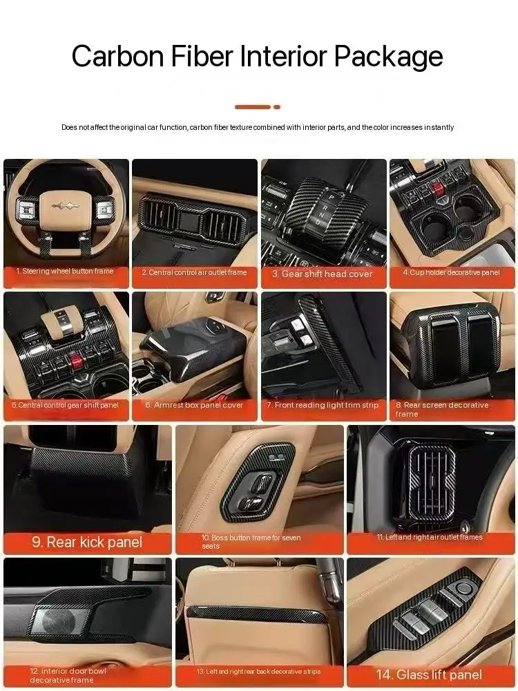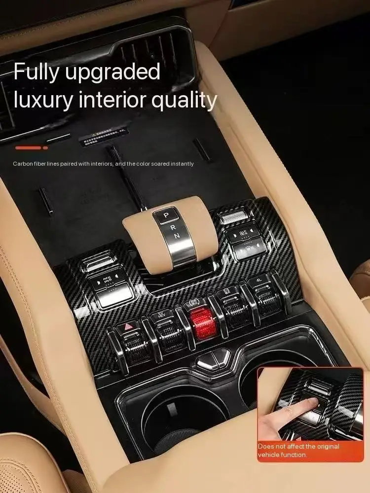 For Equation Leopard 8 Carbon Fiber Pattern Central Control Gearshift Panel Armrest Box Water Cup Cover Decorative Sticker
