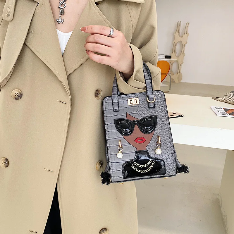 Kalanta Novelty Lady Face Shoulder Crossbody Bags Top Handle Small Handbags Fashion Clutch Purses Ladies Hand Bags for Women
