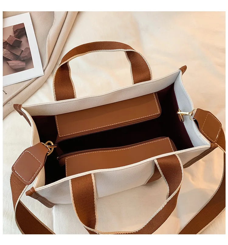 KALANTA Sac Fashion Trend Luxury Designer Button Cotton Canvas with Custom Printed Logo Women's Tote Tags Top Handle Handbags