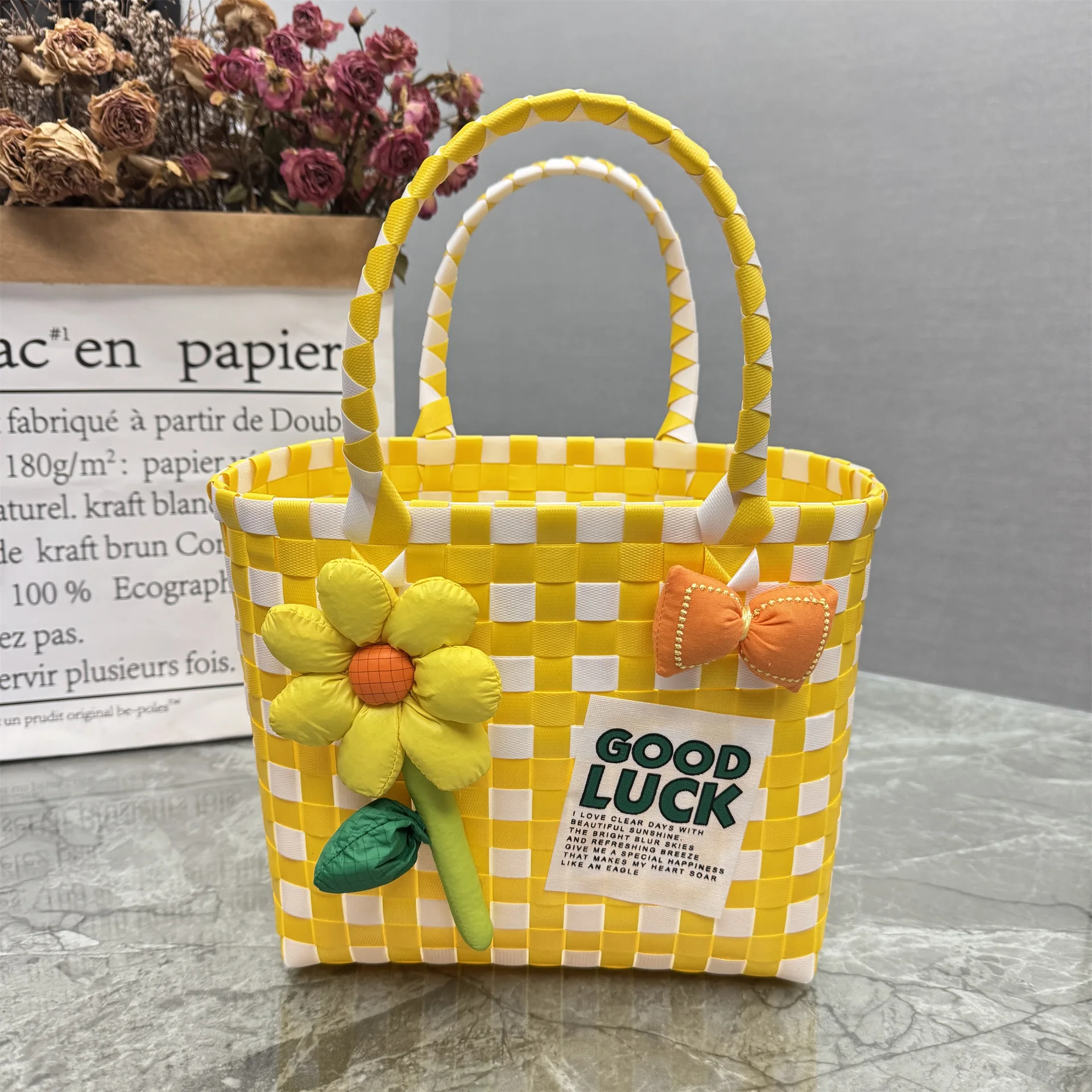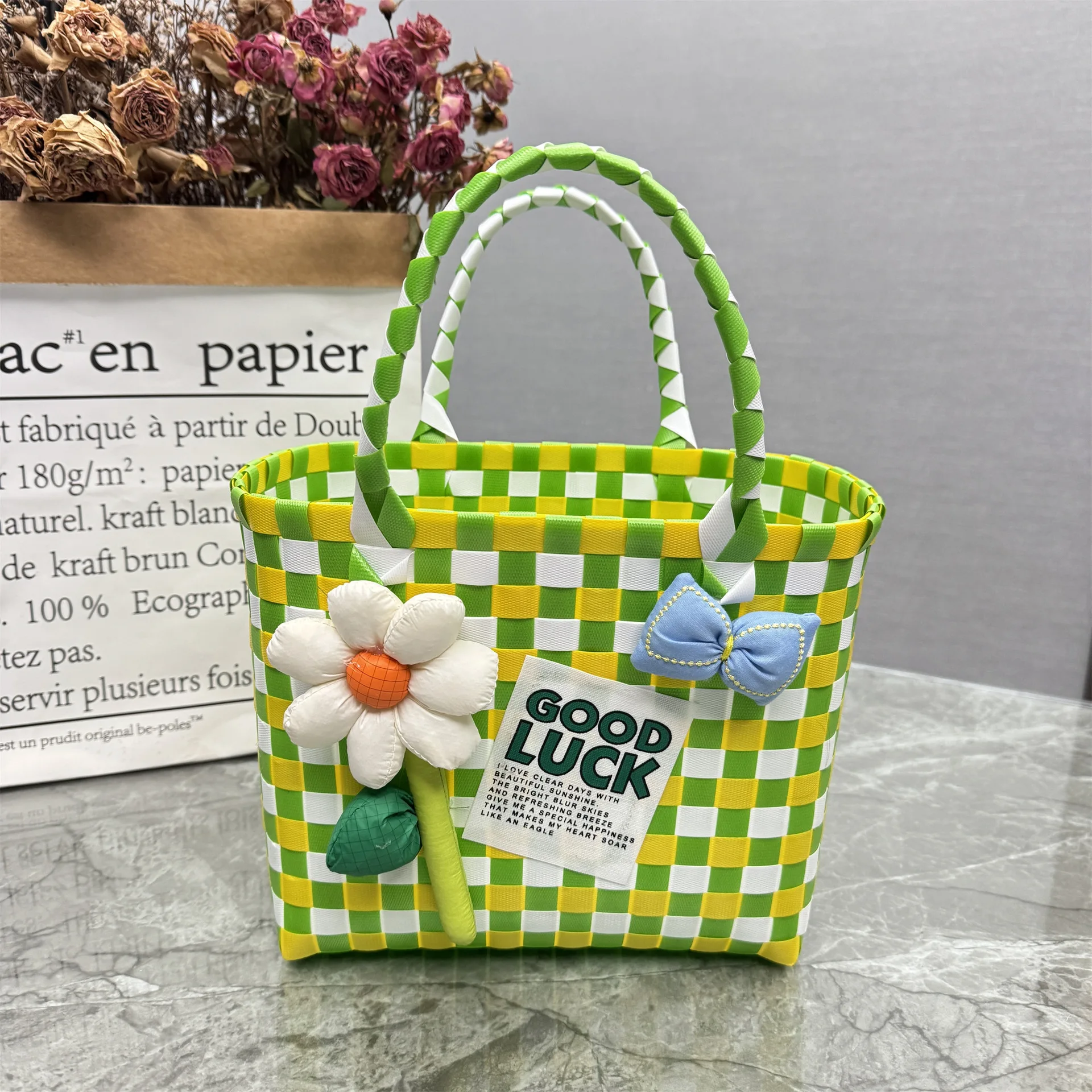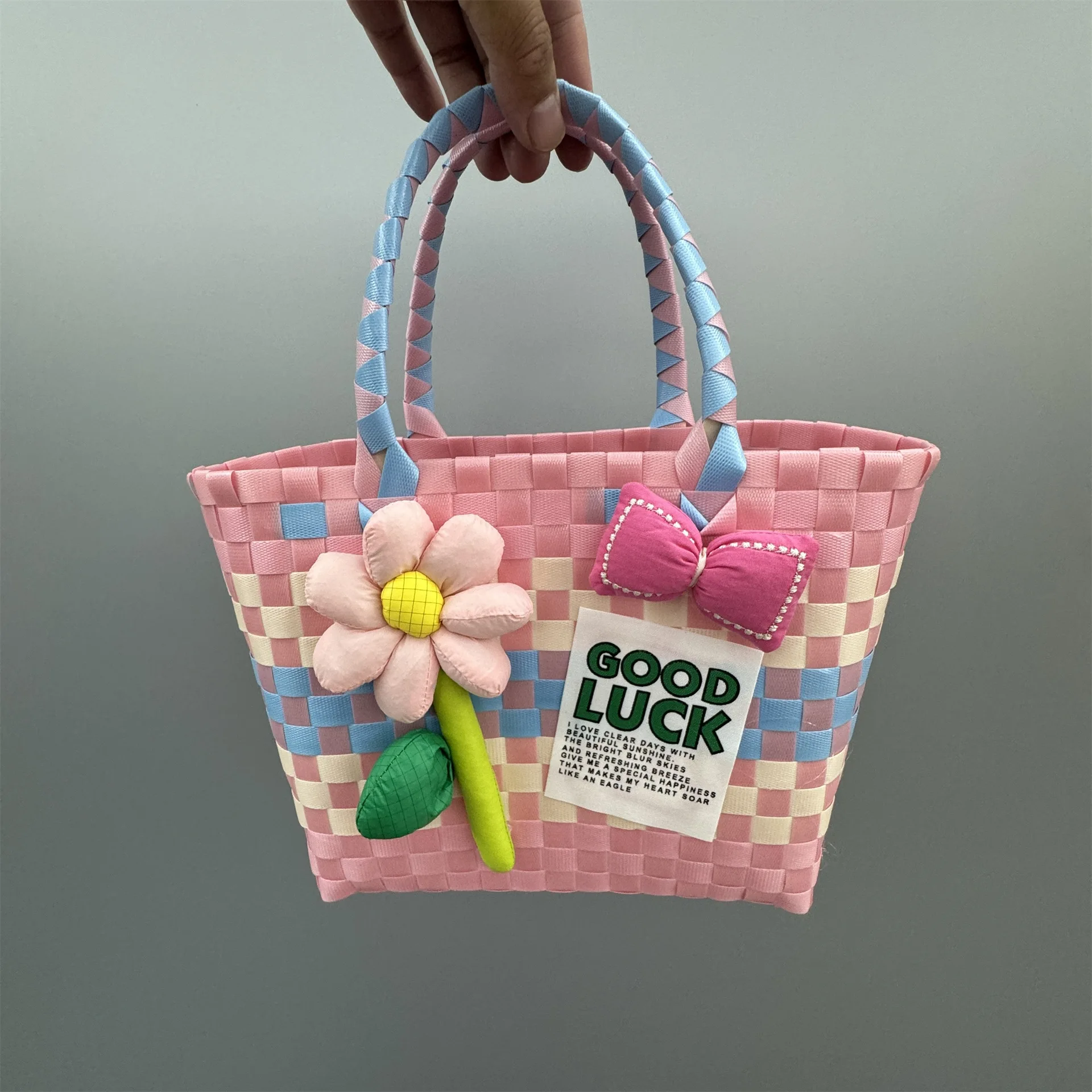 KALANTA 2026 Bolsas Reutilizables Basket Woven Bag Plastic Women's Hand Bag Vegetable Holiday Travelling Rattan Weaving Handbag