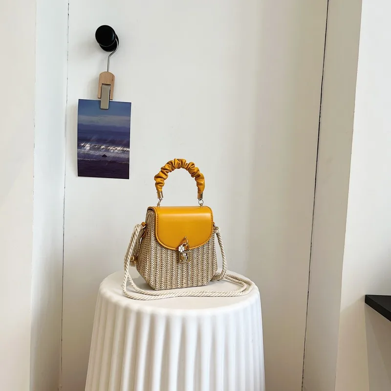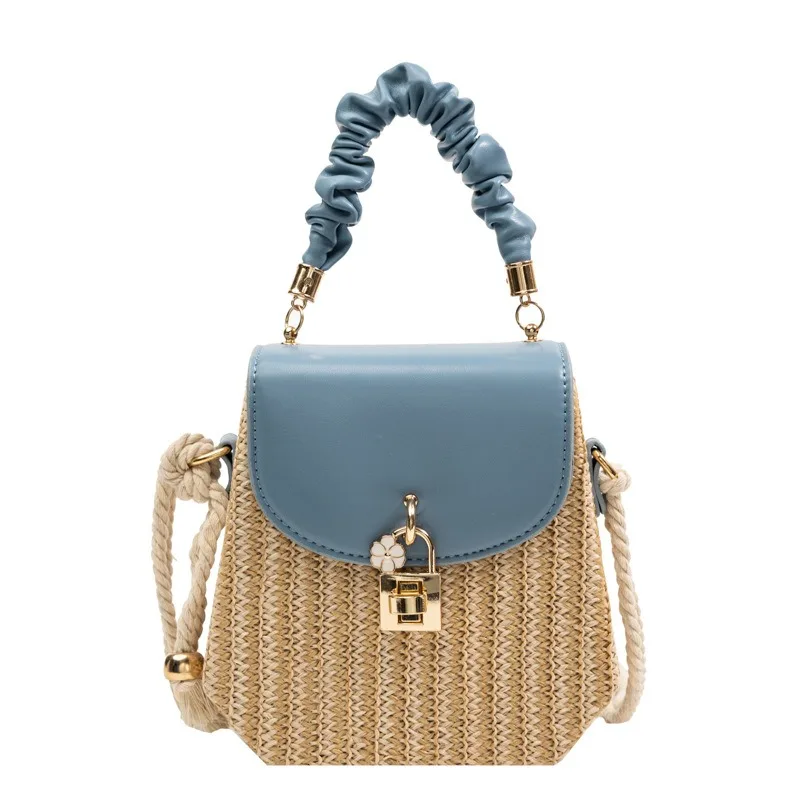 KALANTA 2026 Lock Straw Splice PU Leather Shoulder Bag Straw Woveing Designer Summer Beach Bags for Women Woven Handbag Ladies