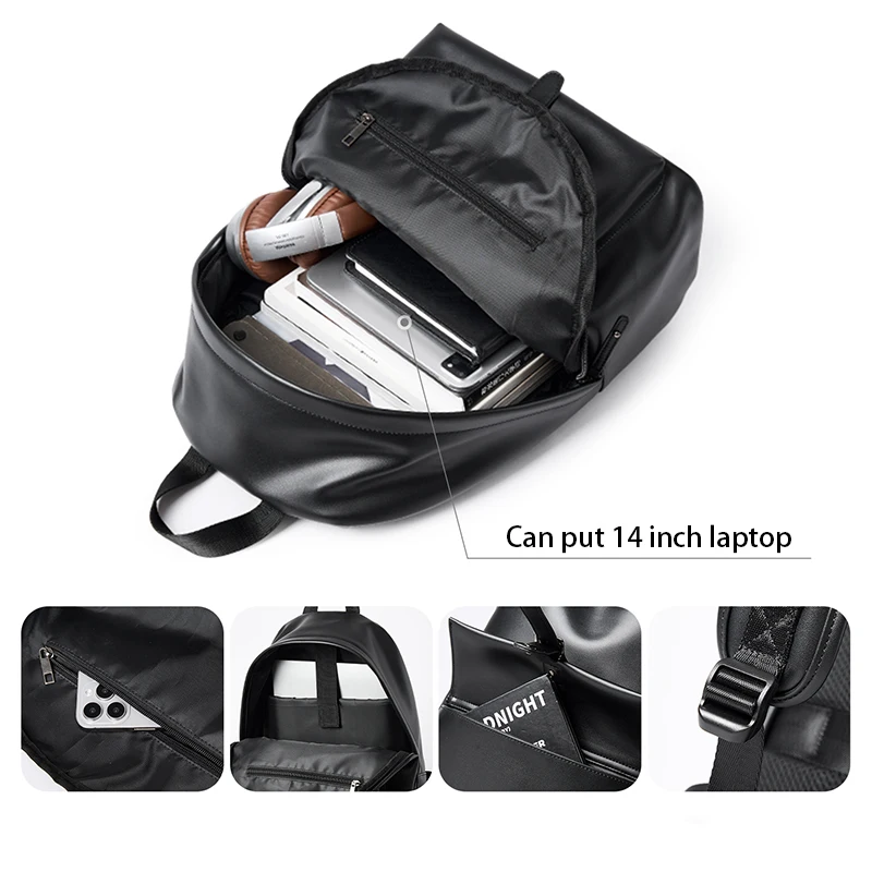 Fashion Pvc Leather Laptop Backpack For Men Anti-theft Waterproof Men's Backpacks Travel School Bags Outdoor