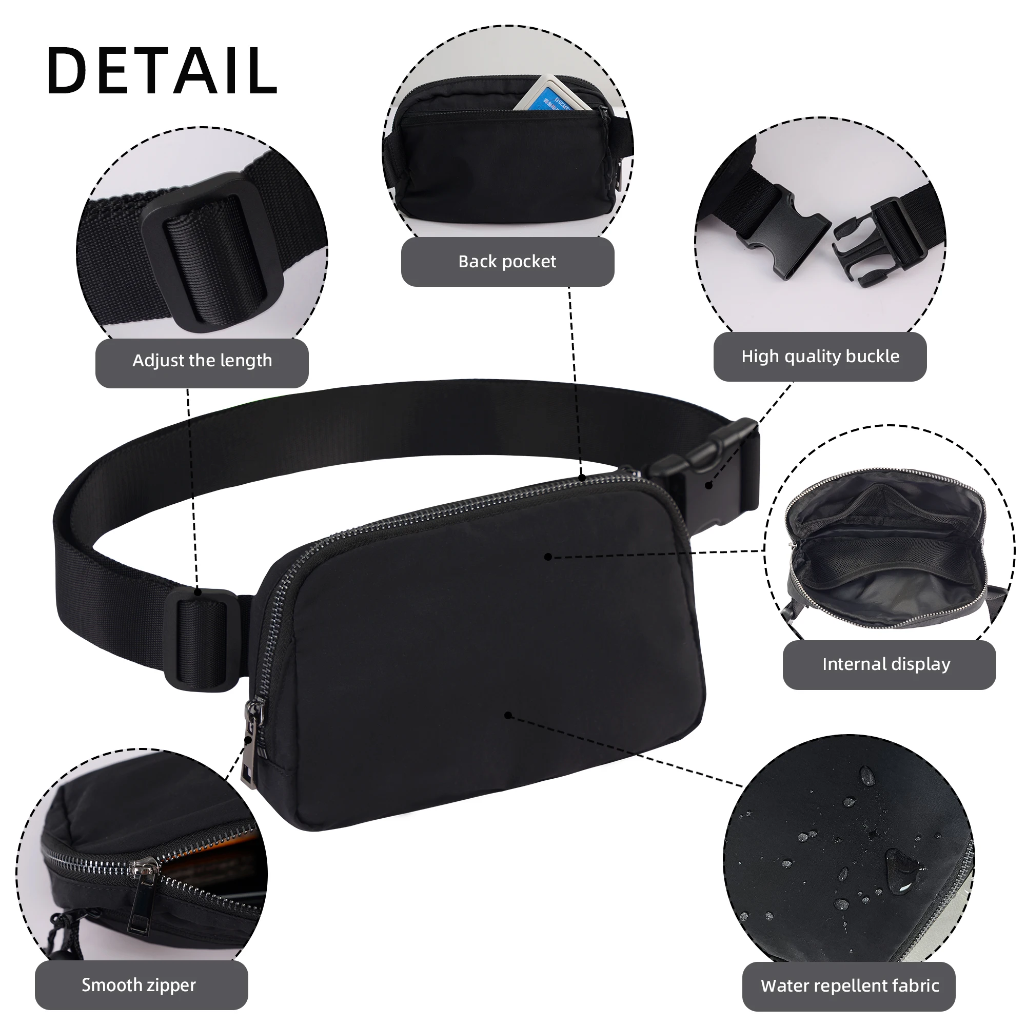 Customizable Sports Sling Chest Waist Bag Nylon Zipper Mini Everywhere Women Fashion Belts Bag With Adjustable Straps