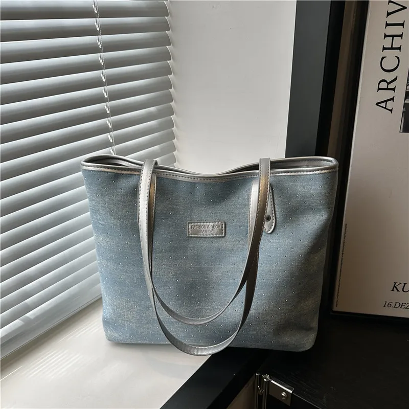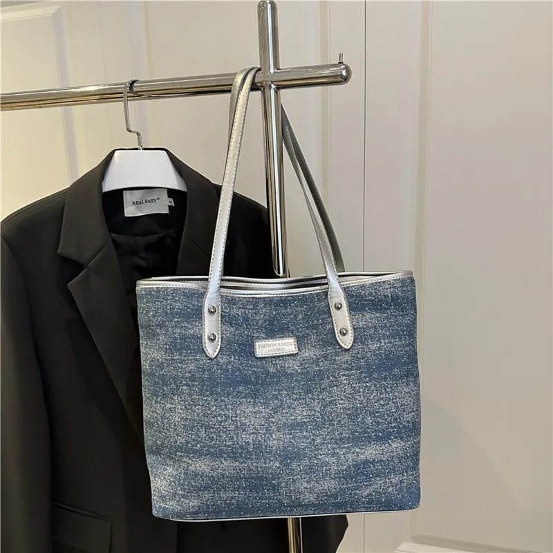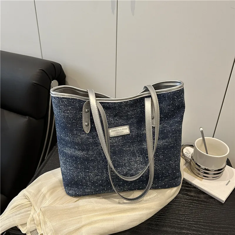 Denim High-capacity Fashionable Women's Single-shoulder Bag Women's Top Casual Tote Bag Messenger Bag For Ladies