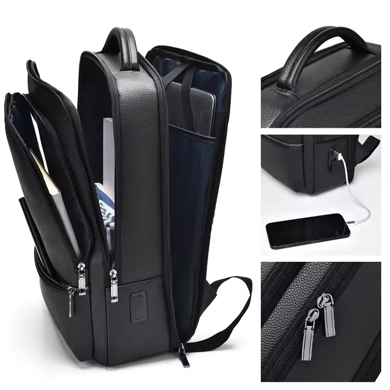Pu Leather Smart Business Briefcase Luxury Rucksack Briefcase Design Waterproof Bagpack Back Pack Travel Laptop Backpack