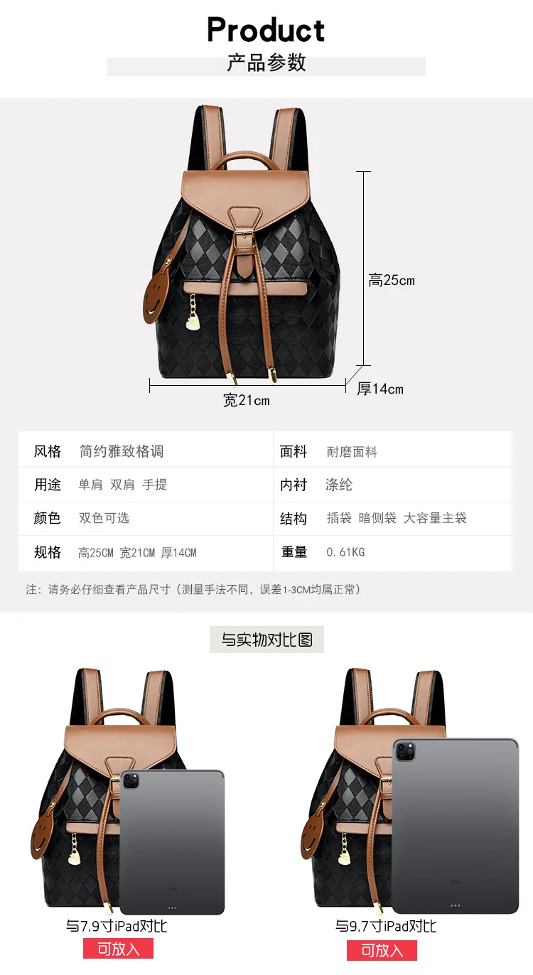 New Retro Contrast Color Women's Travel Backpack Women's Casual Lightweight Plaid Backpack