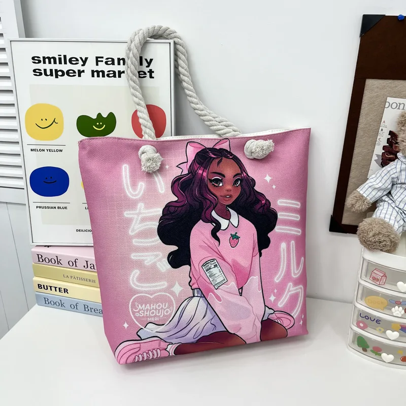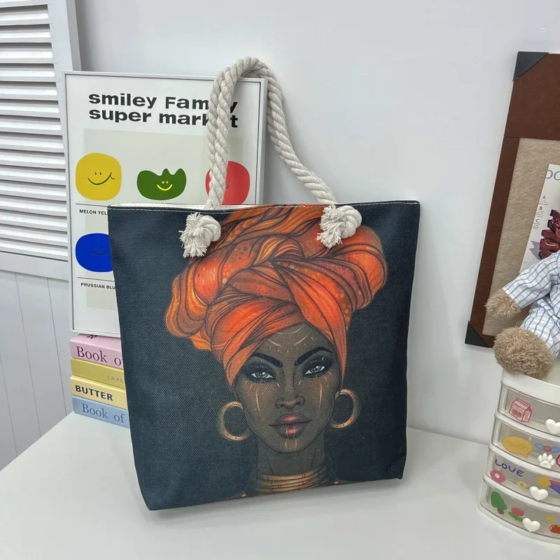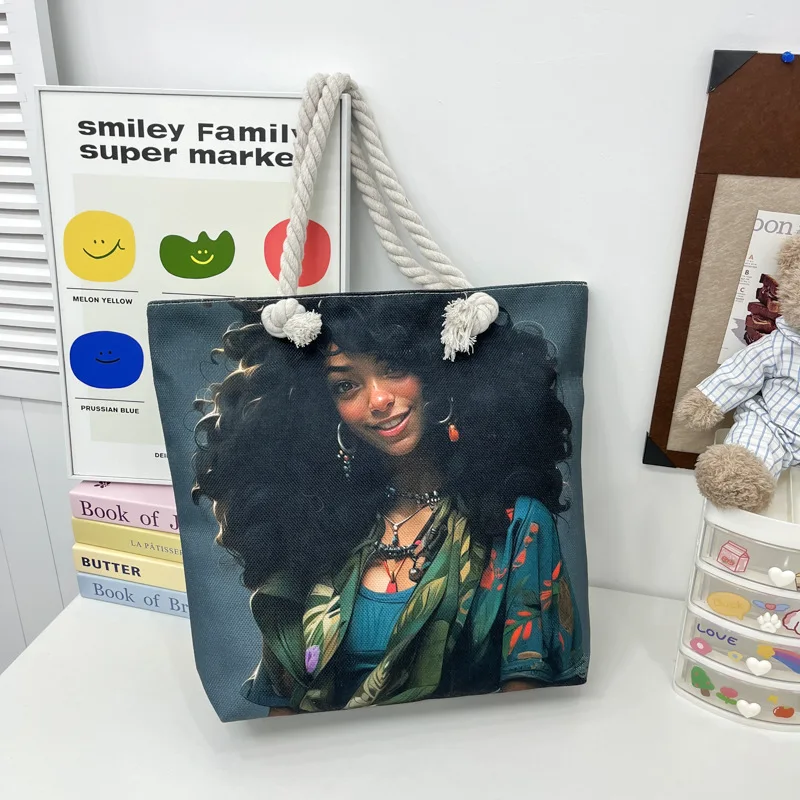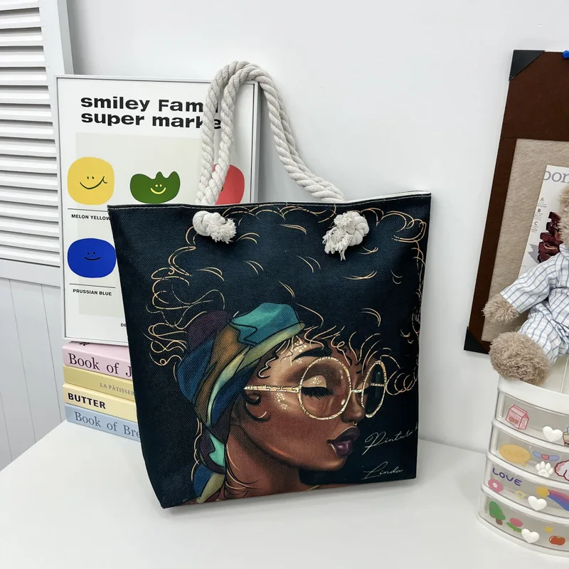 New All-match Tote Bag Women's Portable Shopping Bag Woman Print Thick Rope Large Capacity Beach Bag