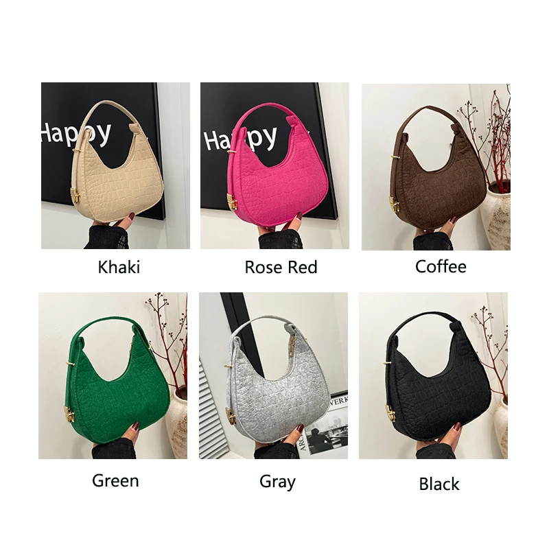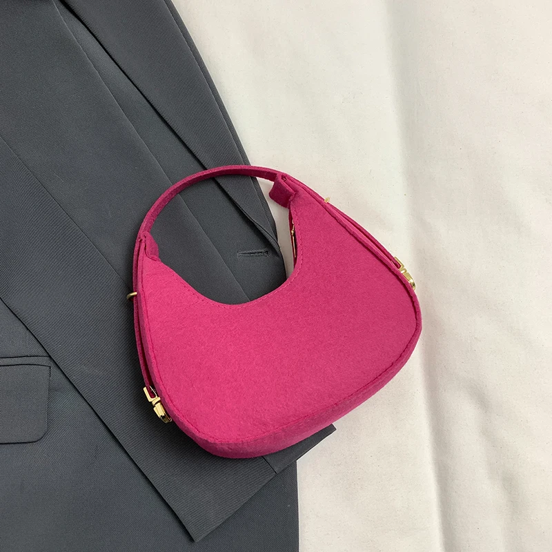 Top Sale Special Design Fashion Felt Solid Color Underarm Mini Colorful Women's Shoulder Bag Pouch