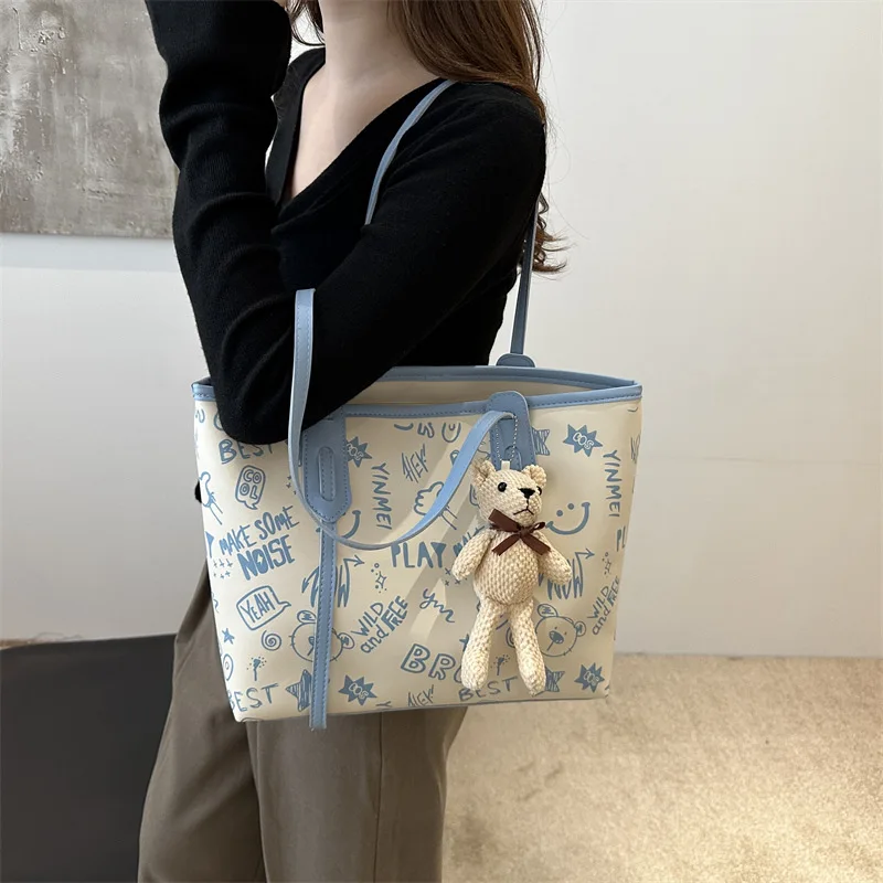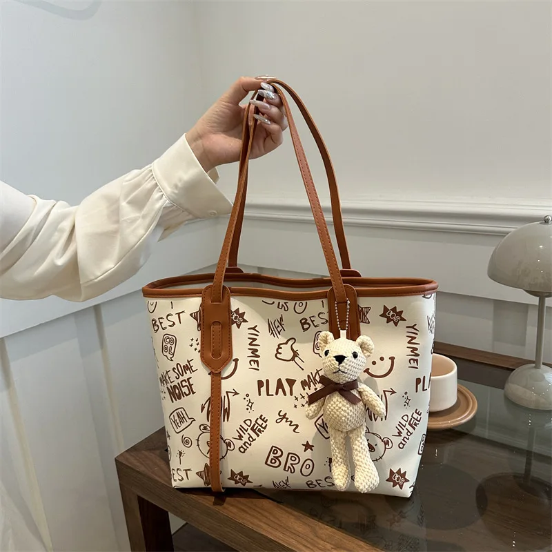 Graffiti Fashion Women's Handbag 2026 New High-end Shoulder Bag Pu Leather Large Capacity Tote Bag
