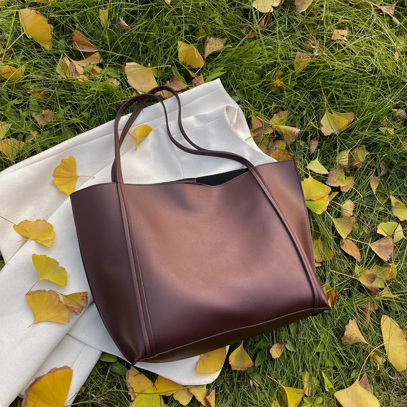Light Weight Trending Fashion Large Capacity Casual Stylish Autumn Winter Elegant PU Leather Retro Tote Shoulder Bag for Women