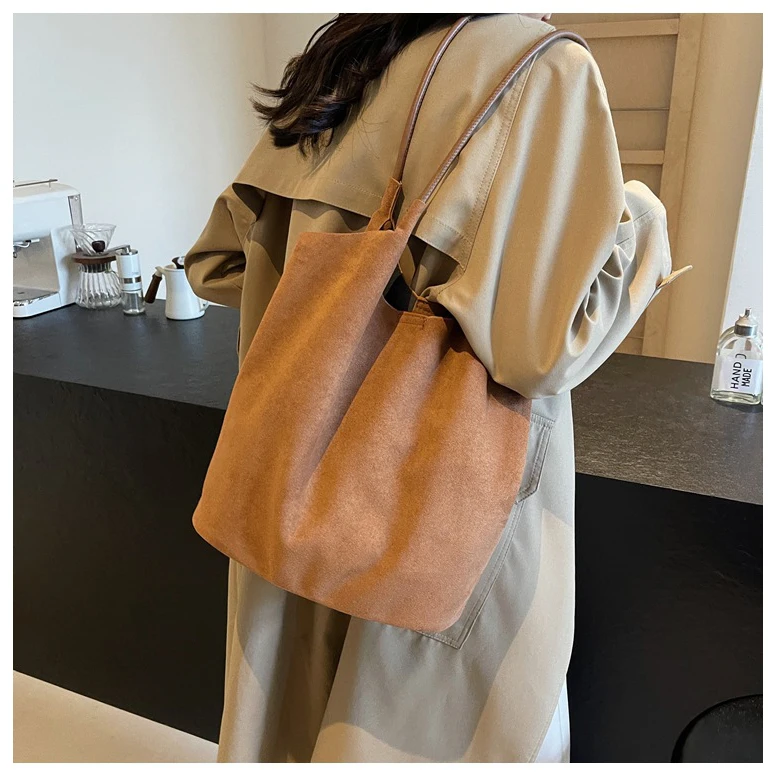 Autumn Winter Luxury Ladies Suede Bag Bucket Custom Pu Leather Handbag Suede Shoulder Bag For Handbag Women Customised Tote Bag