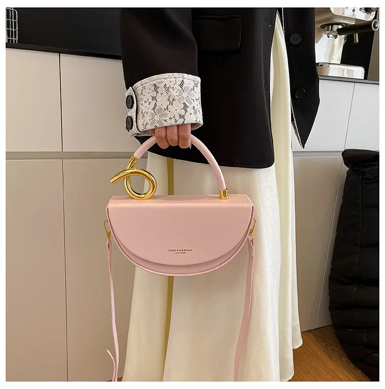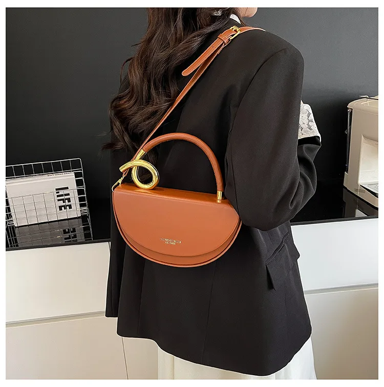 2026 New Luxury Hand Bag For Women Pu Leather Semi Circular Handbag Elegant Handle Women's Shoulder Bag Designer