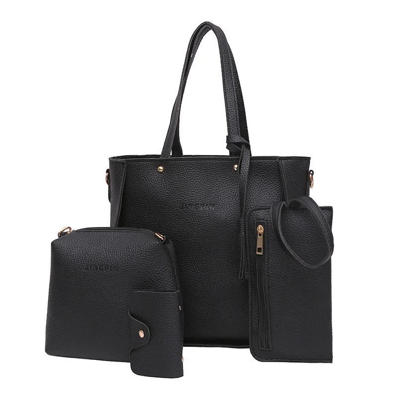 Best-selling Trend Lychee Cross Messenger Mother Bag 4-piece Set Handbags For Women Fashion Bag Package Pu Single Square Nylon