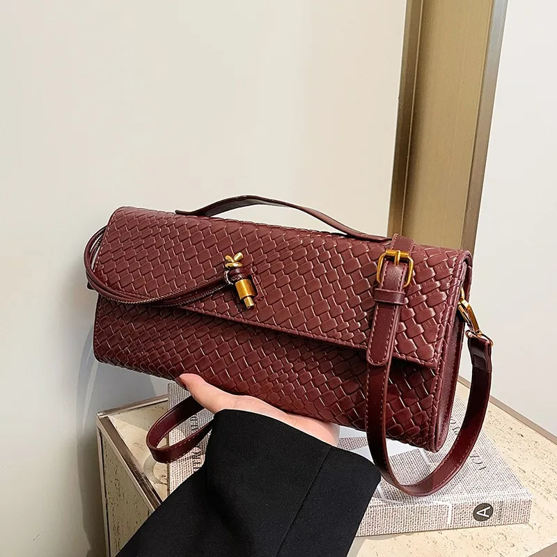 2026 Retro Luxury Woman's Crossbody Bag Zip Closure Shoulder Handbag With Woven Pu Leather And Lock Fashionable Lady's Purse