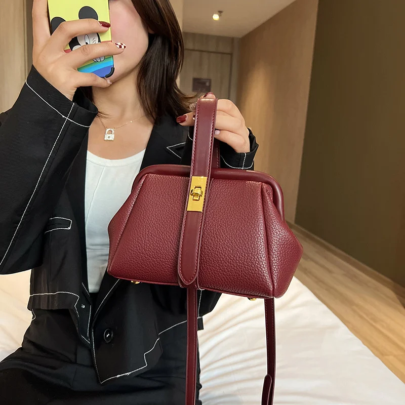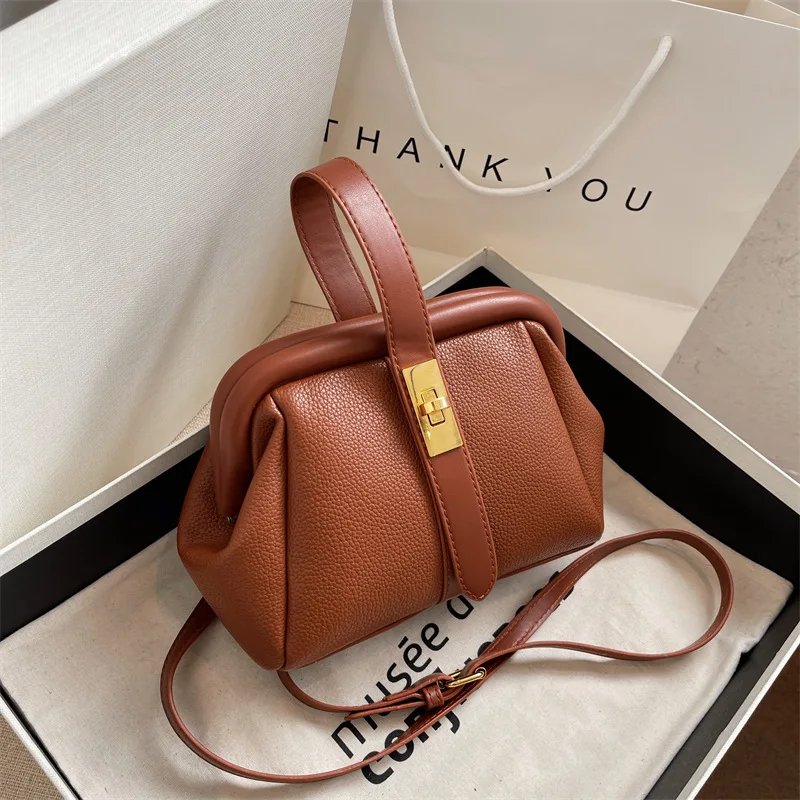 2026 Vintage Trend Clip Women Hand Bag Ladies Messenger Bags Pu Leather Shoulder Handbag