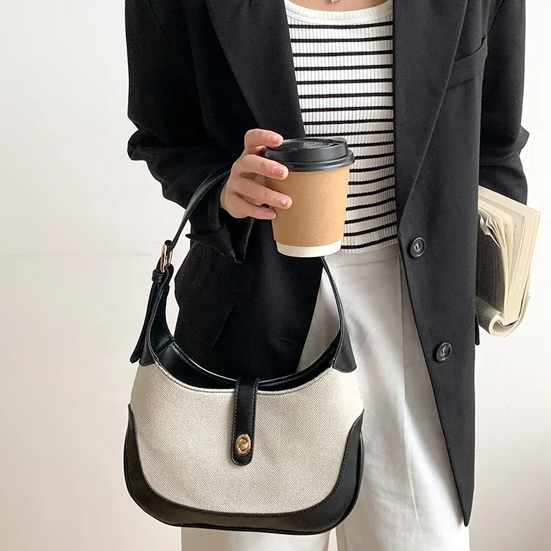 Wholesale Coin Purses Ladies Handbags Fashion Patchwork Women Hand Bags Canvas Shoulder Bag Waxed Canvas Sling Bag