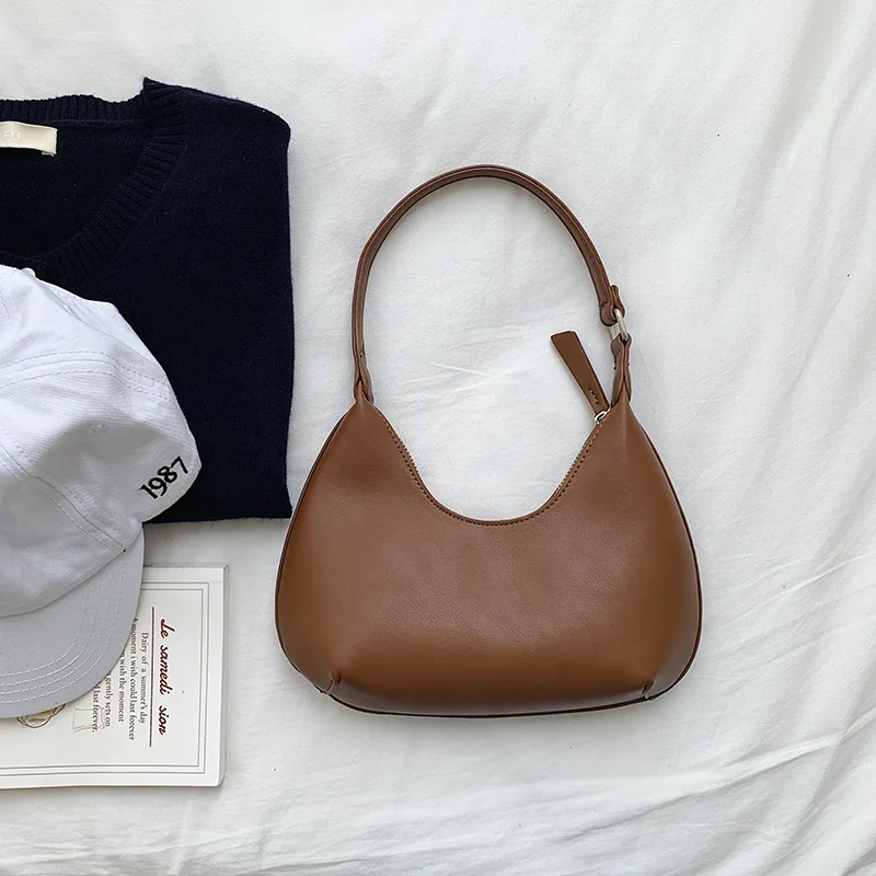 2026 Women's Casual Simple Women's Shoulder Bags Fashion Hand Bag Ladies Crescent Shape PU Leather Handbag