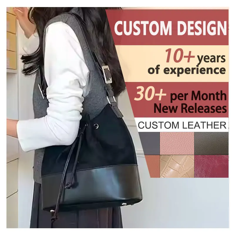 Designer Vintage Popular Ladies Women Crossbody Shoulder Hand Bags Fashion Casual Large Capacity Cowhide Leather Bucket Bag 2026