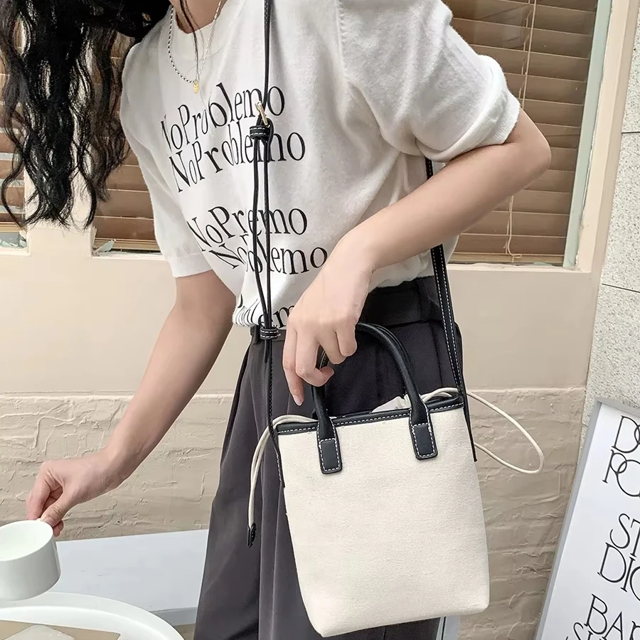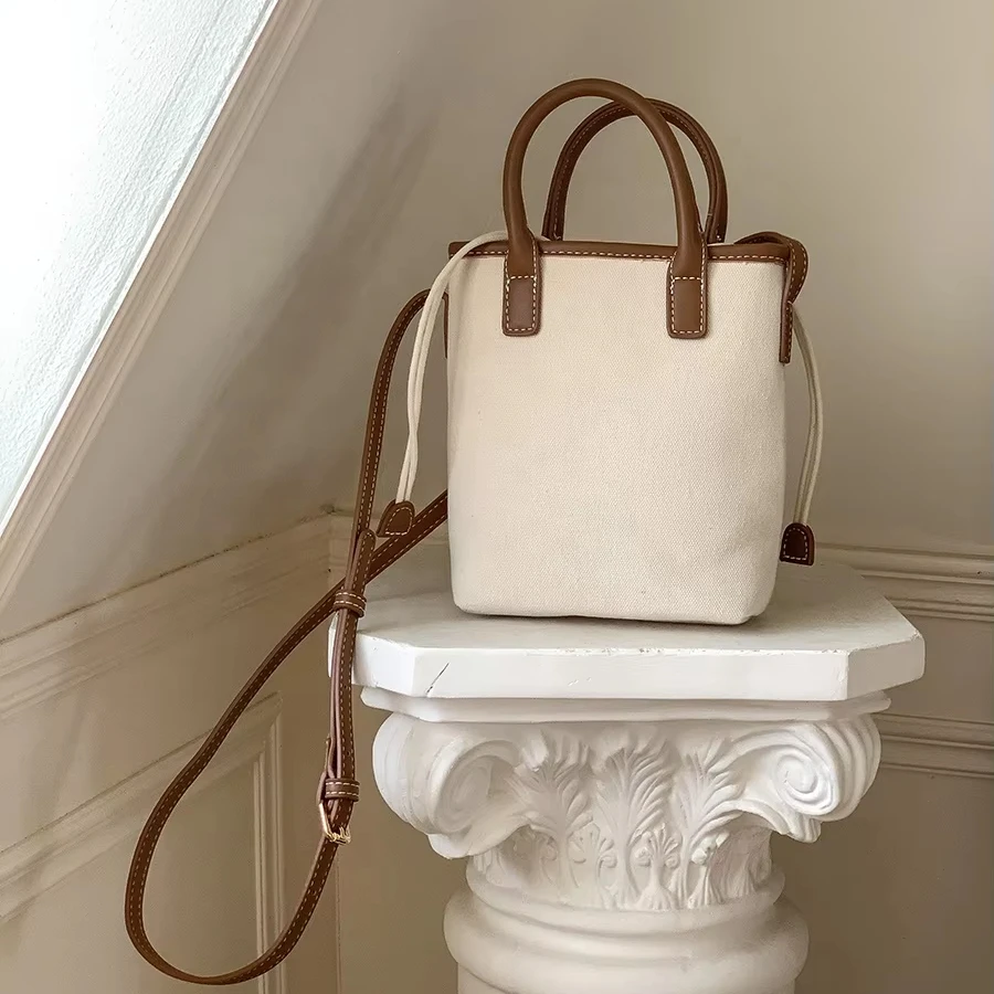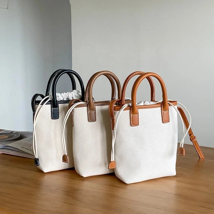Factory Wholesale PU Fabric Hand Bag Drawstring Design Tote Bag Women Weaving Design Diagonal Bucket Bag Ladies