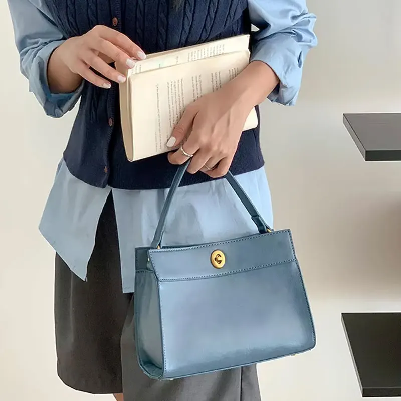 Designer Vintage Popular Ladies Women Crossbody Shoulder Hand Bags Fashion Casual Large Capacity Cowhide Leather Bucket Bag 2026
