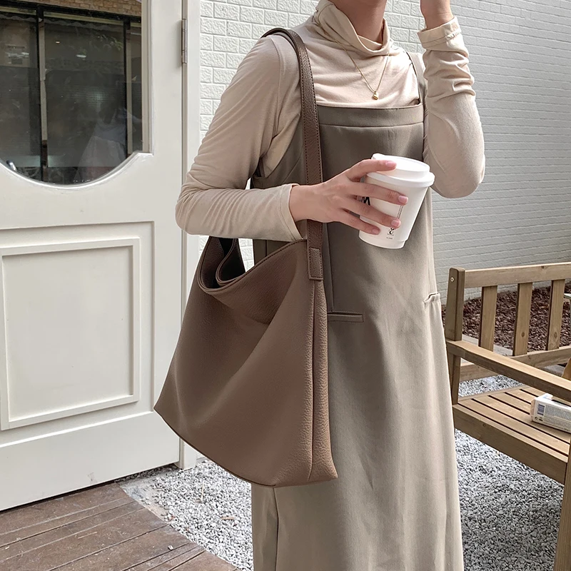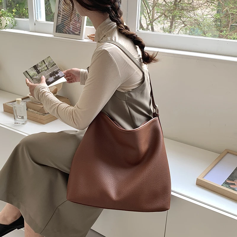 2026 Autumn Large Capacity Tote Bag Retro Soft Leather Messenger Bag High Quality PU Leather Shopping Bags
